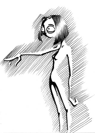 Petite historique: je l'ai appelé "exp" parce que c'était de l'expérimental. Je me suis inspirée d'une bd que je venais de lire, Sincity (exemple 1, exemple 2), pour être plus précise. Je voulais faire une bonne femme sans ligne de contours, il est suggéré par le background seulement, et par les ombres... ouais, enfin.