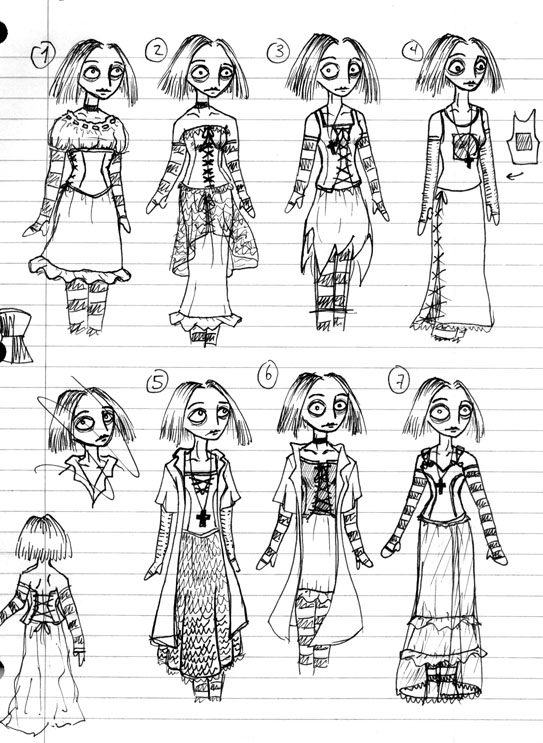 Petite historique: Je me demandais seulement ce que mon personnage principal dans ma BD pourrait porter... Mais une très brillante personne m'a illuminé, heureusement, j'ai faillit faire une gaffe, merci Maryse. Elle ne portera aucun de ces habits, et ce malgré les votes des gens dans l'attic.