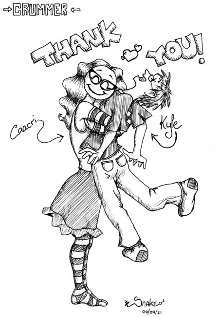 Petite historique: Un cadeau pour Crummer. il est anglophone et il m'a aidé à corriger un essai que je devais faire en anglais. Grâce à lui, j'ai eu une note pas pire (mais pas super non plus... gh!), mais enfin, il a pris le temps de m'aider, alors il fallait bien que je le remercie d'une quelconque façon!