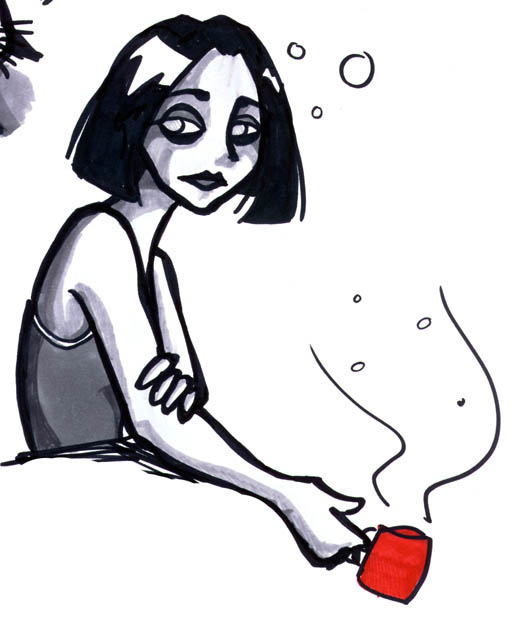 Petite historique: Je viens juste de m'acheter, au moment où j'écris ces mots, des crayons feutres à deux pointes prismacolor. j'en ai 4 gris froids: 10%, 40%, 70% et 90%. Il fallait bien que je les essaie. Les gris ont bien sorti dans le scannage mais le rouge-orange est supposé être rouge pétant. Il faudrais que je gosse un peu dans la 'hue' sur photoshop, mais là je suis dans ma chambre avec dreamweaver d'ouvert et j'ai pas envie d'aller goser avec la hue et la saturation. On ne voit pas non plus le gris 10%, il est sorti blanc (j'ai colorié sa peau avec ce gris avec des petits highlights subtils). On est pas supposé voir les coups de crayon, c'est que je les ai mal utilisés - j'ai repassé plusieurs fois à la même place tandis que le crayon était sec, voyez? le seul endroit où j'ai colorié comme du monde c'est sur sa camisole -_-;; C'est mon personnage de dessin animé, que je vais supposément faire un jour, sur l'air de l'élégie de Rachmaninoff.