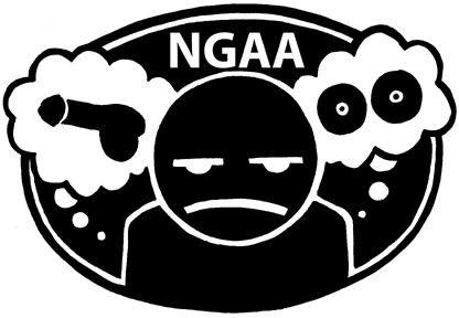 Petite historique: Je vous présente le badge officiel de l'alliance nommée "NGAA", "Not Getting Any Alliance"! c'est un inside avec mes copains de l'attic... c'est un espèce de club qui rallient tout ceux qui n'ont pas de sexe! Alors il y avait un petit concours pour créer le badge du club, et on a été seulement deux à participer... on a gagné les deux! ^_^ L'autre était en couleur, il représentait un Gummy Bear (c'est la grosse joke, parce que C avait posté dans le forum une image de plein de gummy bears en train de baiser...). Le site officiel est inclu dans le domaine de la merveilleuse Mally, la "Lazy chick extraordinaire"! ^_- C'est ici: http://www.lazychick.net/ngaa/