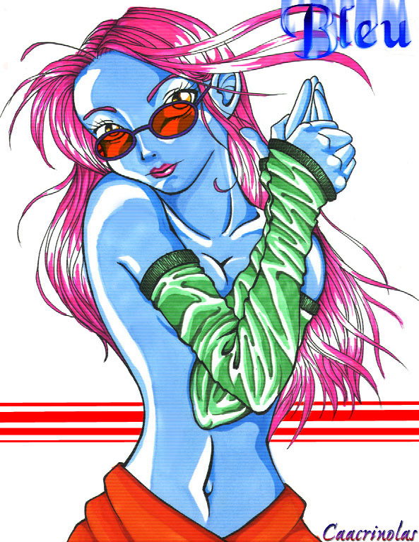 Petite historique: Les lèvres sont vraiment moches... oh pardon. Je venais me m'acheter 24 crayons feutres prismacolor à 2 pointes de plein de couleur différentes et je voulais les tester un peu... puis je me suis amusée sur photoshop à rajouter quelques trucs amusant - de la couleur dans les lunettes, les lignes rouges, le titre, le petit effet de screen, et j'ai corrigé quelques bévues...