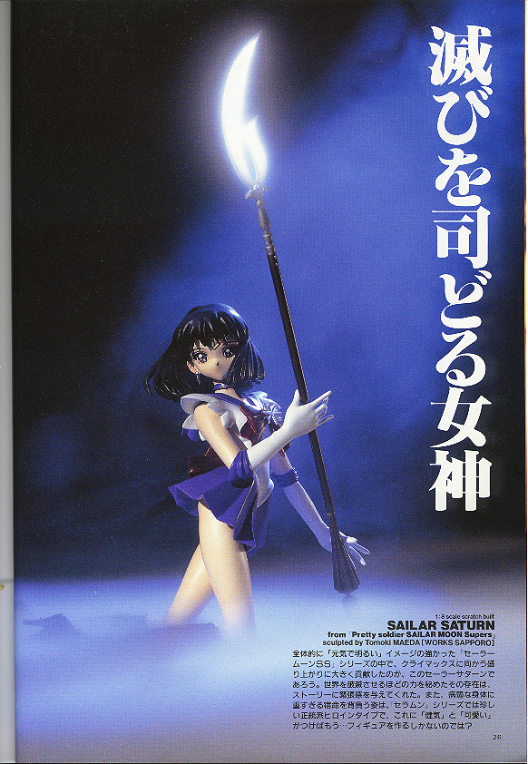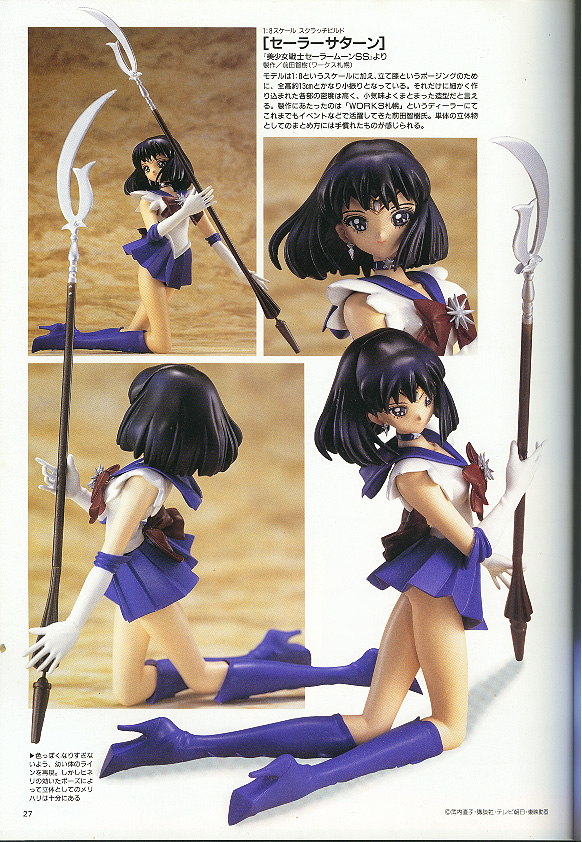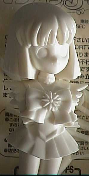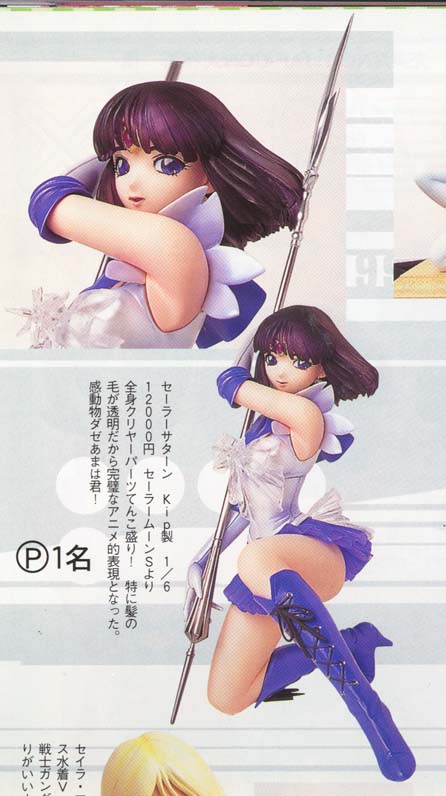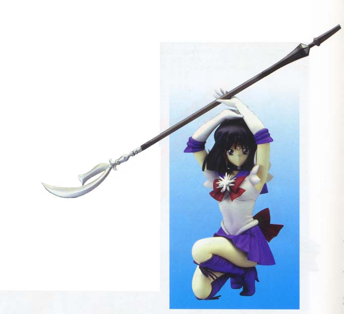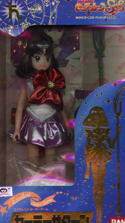 First of all, there is two kinds of dolls: the ones which are sold by bendai or irwin on an official seller, and the ones wich are popular imitations from unknown companies. I saw a lot of imitations in my life. The most imitated Senshi is, everyone knows it, Sailor Moon. About Sailor Saturn, I've never seen any imitation. I guess she's not popular enough here in north america. Ok, now, I'll dress a list of some site where you can find the stuff your want. Kimono my house : Merchandise from a LOT of Anime! If you are looking for something about an Anime that is not very popular, go here, and you will find it. About Sailor Saturn, I saw... one thing: it says that they sell a poster with 10 characters... And I'm not sure it is a poster with Sailor Saturn included. The inconveniant is that the catalog doesn't show any images of the products (except for two or three...) Abada's Universal gifts : More pics. You can find here a lot of Sailor Saturn stuff: dream pocket ($55... Very expensive) (sold out!), Sailor Moon Super S Excellent Sailor Team ($180!!!) (sold out too). It is quite expensive... Isn't it? They sell too some trading cards and Playing card. But here, we cannot see any images. Luthien Enterprises : The best site I've seen for buying Saturn stuff: every single product has its picture and they sell a lot of miscellaneous things. You can buy dolls from irwin (like prof Tomoe or Kaori... and the IRWIN SAILOR SATURN KEYCHAIN!! The only Saturn toy from Irwin!($6)) There's a section with a picture of every card that is sold - and there's saturn cards! Génial. They sell Naoko's Artbook, the Sailor Saturn Dream Pocket ($55), a Hotaru ($84,25) and a Sailor Saturn Resin kit (sold out) (wouaaaaa!!!), another Sailor Saturn Resin kit ($25) and another one! ($93) Nichibei Anime Club : There's not a lot of pictures. And they doesn't work! There's the dream Pocket for $25 (sold out), Sailor Saturn beauty change doll ($60) (sold out), Hotaru telephone card (sold out!)... But the Sailor Moon Section will be updated soon. I'll upgrade then. Joy's Japanimation : Was AnimaTED. They use to sell Saturn Merchandise. But I don't see any anymore. Anime Plus : Sailor Moon CDs, and the Sailor Saturn poster. Not a lot of things. Planet Anime : They sell the episodes on a Laser Disk??? (around $67) Luna's Dream World - Auction House : Originally, this site is a homepage. The author of this site maintains a lot of trading of cards from different series. Interresting for trading cards. Sailor Moon Super Store : The images are very fuzzy, but the store is very complete! We can find the Sailor Saturn Wallscroll ($5), coloring books ($6), the Sailor Saturn keychain ($5), pencil cases ($7). The Place : Sailor Moon S tapes ($65), all the mangas ($6,75), Sailor Moon S Anime comic ($12), as you can see, they sell moslty books. Anime World : They sell the Sailor Saturn Garage Kit!!!!! But Garage Kits require assembly like models, and also require painting... But it is a must. I would do anything for a piece of jewel like that. (only $47!) (sold out... WHAAAA) Sailor Moon Store : Nothing! Usagi's House : 2 UFO doll (stuffed) ($85 and $250 (you have to buy a set of 5)). Good pictures. Good layout. I like this site. They also sell cels, but I didn't see sells of Hotaru. Bunny's Anime Catalog : A Sailor Saturn Mousepad ($12), t-shirts (~$15), and great images...