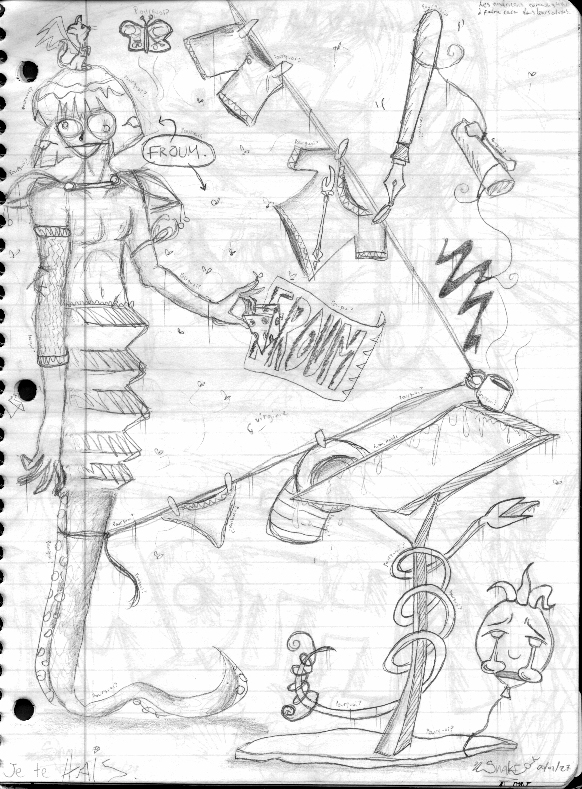 Petite historique: Ça aussi, c'est quand les cours sont plates... On peut voir ma petite obsession d'Hotaru et ma petite déviation mentale. Date du dessin: 27 janvier 2000.