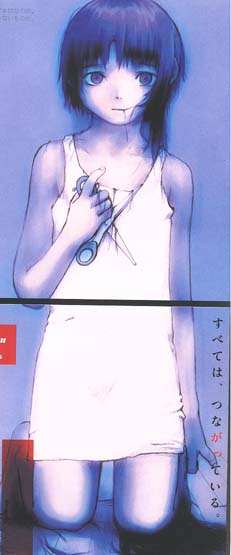 Petite historique: Voici ma série "Soyons heureux sans en avoir l'air". Les connaisseur y reconnaîtrons un titre de bande dessinée (Monsieur Jean, "Vivons heureux sans en avoir l'air"). Oui, je sais. Mais le titre était trop fabuleux pour le garder sous silence. Puis il collait avec ce que je faisais. Ce dessin n'est pas la premier de la série. J'en ai fait d'autres avant (je dois avouer que celui-ci, c'est le plus laid) dans l'agenda de Jasmine et d'Ariane. Mais je ne les ai pas alors je n'ai pas pu les scanner ce soir. Ça a commencé dans le cours d'histoire, Jasmine me donne son agenda et me dit: dessines ce que tu veux. Je lui dis: ok, je vais faire une sailor saturn. Elle de répondre (ou à peu près): tout mais pas ça!!! Alors je pense à un dessin que j'avais vu il n'y a pas longtemps. C'est que je me suis loué un dessin animé japonais qui s'appelle Lain. J'ai vu une couple d'images sur le net pris d'un artbook dont une où l'on voit Lain qui se coupe avec un ciseaux volontairement. Je la trouve magnifique cette image. J'ai voulut faire quelque chose de semblable. Et après, Ariane m'a demandé de faire un dessin dans son agenda. Je m'exécute. Je fais la même chose, mais avec des lames de rasoir à la place des ciseaux... Et là part ma série.