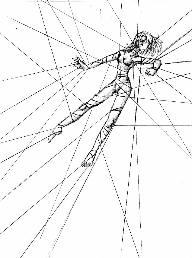 Petite historique: Je ne l'aime pas. Quand j'ai fait ce dessin, j'étais engourdie, ça faisait longtemps que je n'avais pas dessiné quelque chose de complet (c'était pendant l'été, le soir après le travail ou bien la fin de semaine, je ne m'en souviens plus tellement). L'nanatomie est mal faite, les oppositions mal pensées et puis flûte.Non mais matez moi ces genoux. Beurk.
