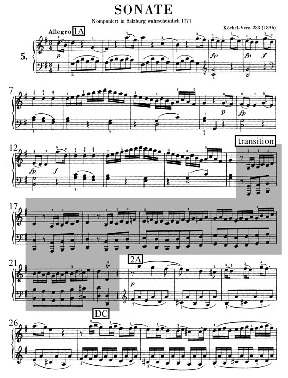 Sonate no5, K. 283 (189h), en sol majeur, premier mouvement, mes 1-29