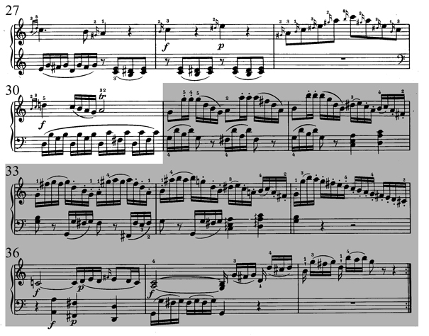 Sonate no 1, K 279 (189d), en do majeur, premier mouvement, mes 27-38