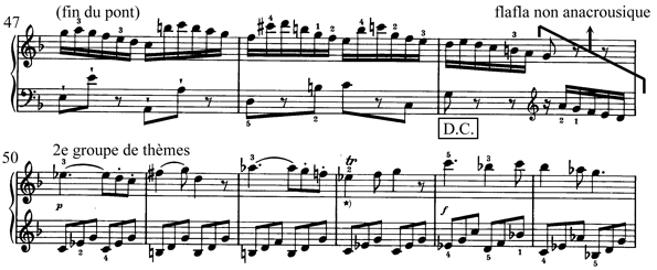 Exemple de flafla qui se veut davantage un joint entre les deux sections; il n’est pas un geste anacrousique.