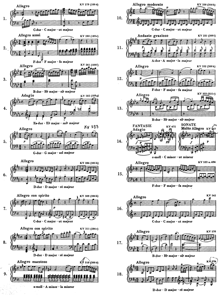 Annexe I: Sommaire des sonates pour piano de Mozart