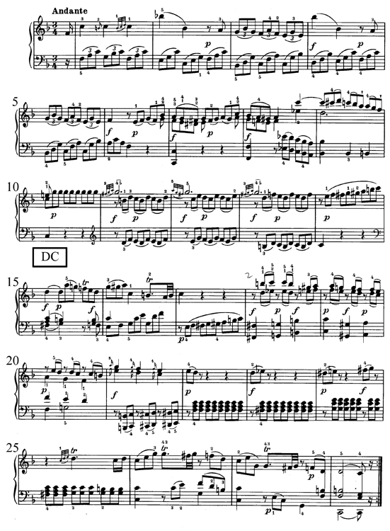 Exposition de la Sonate no1, K. 279 (189d) en do majeur, deuxième mouvement, mes 1-28