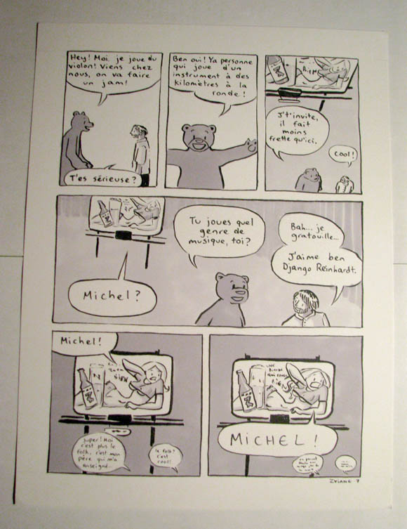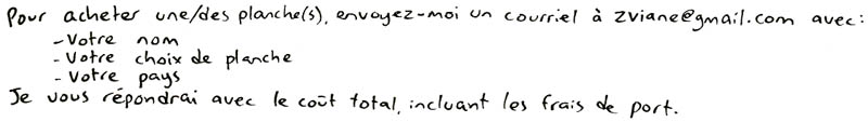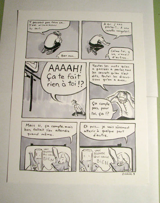 Pour voir les planches: visitez le blogue (planches antérieures au 26 juillet 2008). Pour les planches tirées de la plus jolie fin du monde (l'album): le numéro des planches correspondent au numéro de page. Pour les planches ultérieures: s'il vous plaît indiquer la date de la note.