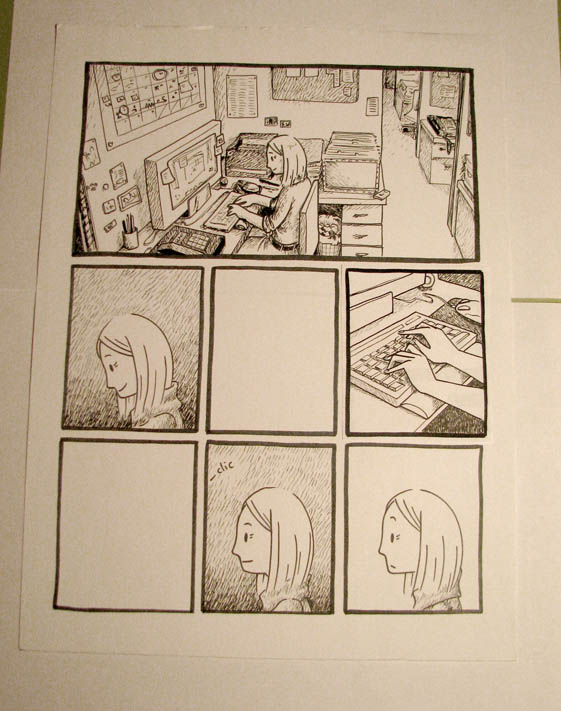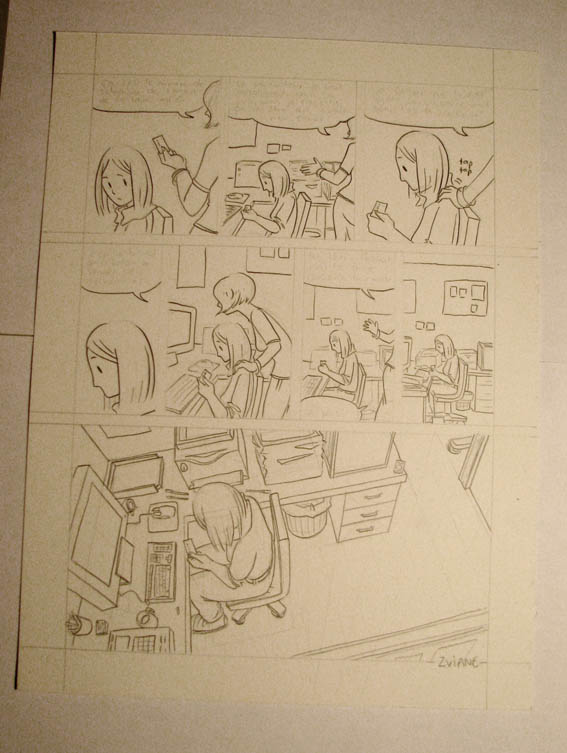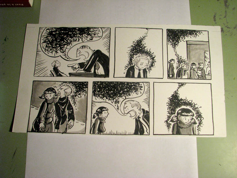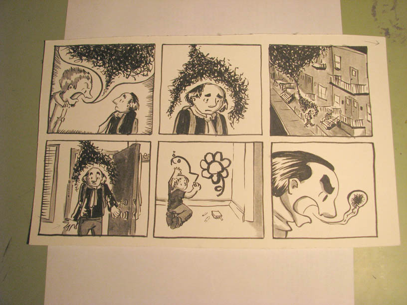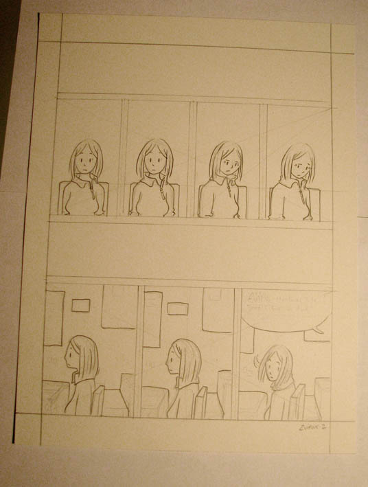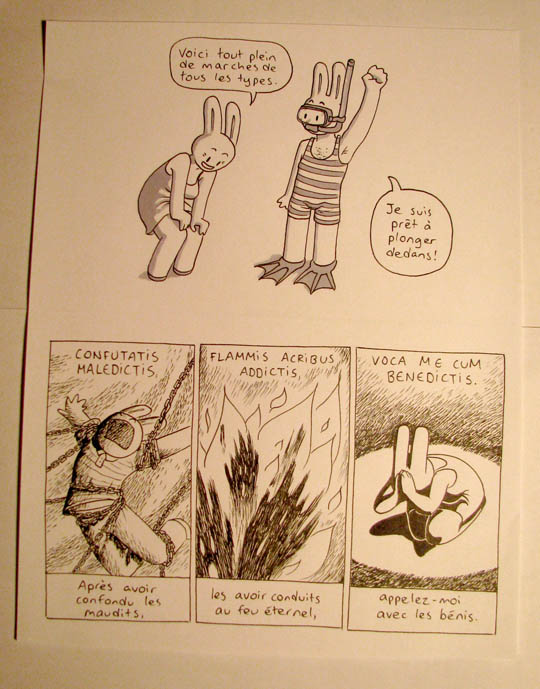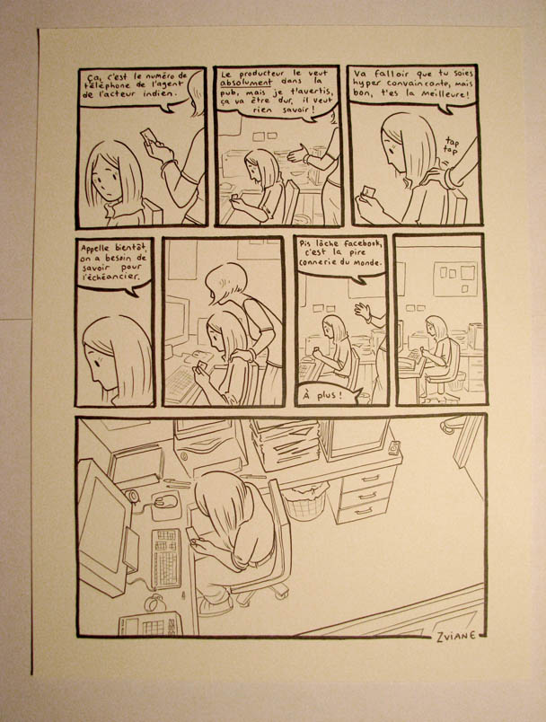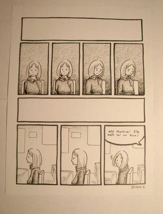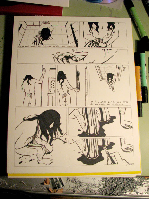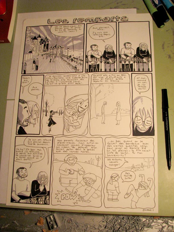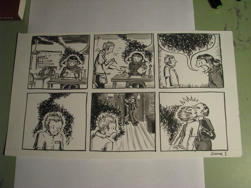 Publié dans le cactus de 2008, ces pages ont été réalisés avec une nouvelle technique: celle de faire les crayonnés et l'encrage sur des pages différentes. La première page a servi de test pour choisir le médium: il y a 3 versions différentes.