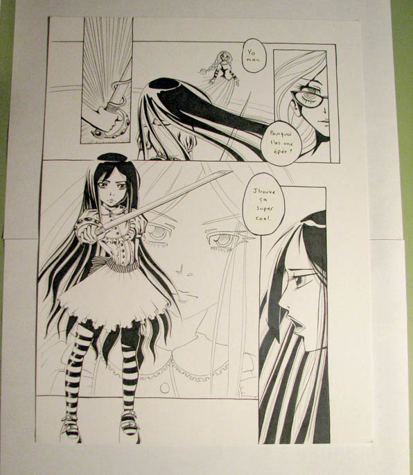 Prix: variable, entre 40 et 100$ la page (demandez pour connaître le prix de la page qui vous intéresse). Les plus jolies pages (selon moi) sont celles du chapitre 4! C'est le chapitre que j'ai dessiné en dernier.