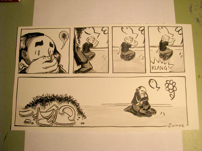 BD pour le cactus de 2003. Pas le genre de bande dessinée que je ferais aujourd'hui (très très éclaté et pas très narratif) mais ça fait quand même de très chouettes originaux, alors pour ça, je suis contente!
