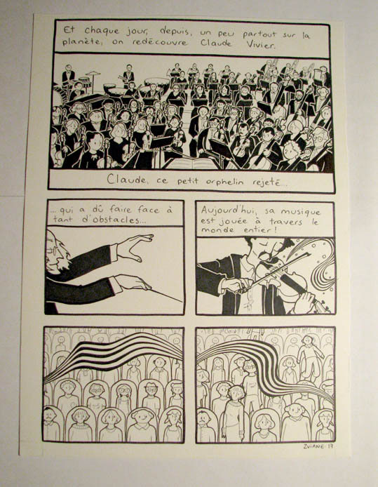 Commande de la SMCQ pour l'année Vivier, cette bande dessinée a été distribuée dans plus de 13 000 écoles du Québec. Elle raconte la biographie sommaire du compositeur québécois Claude Vivier. J'ai eu énormément de plaisir à faire ce projet, ça a grandement amélioré mon niveau de dessin, je crois.