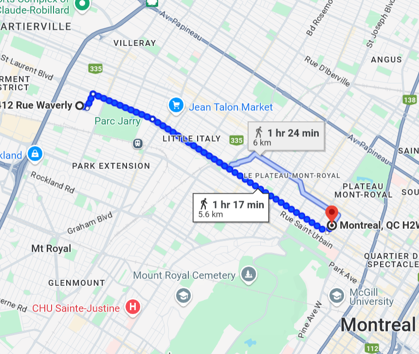 Je décide de marcher jusqu'à chez moi.
