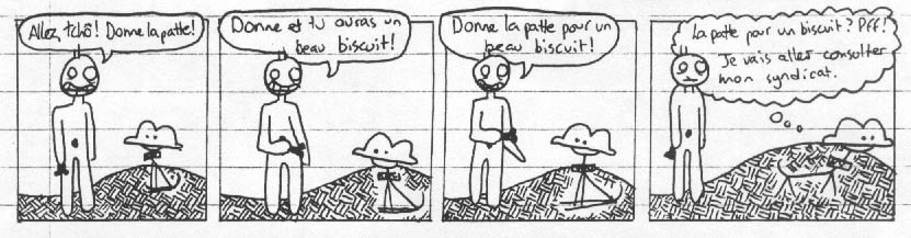patte pour un biscuit? Pff! Je vais aller consulter mon syndicat.