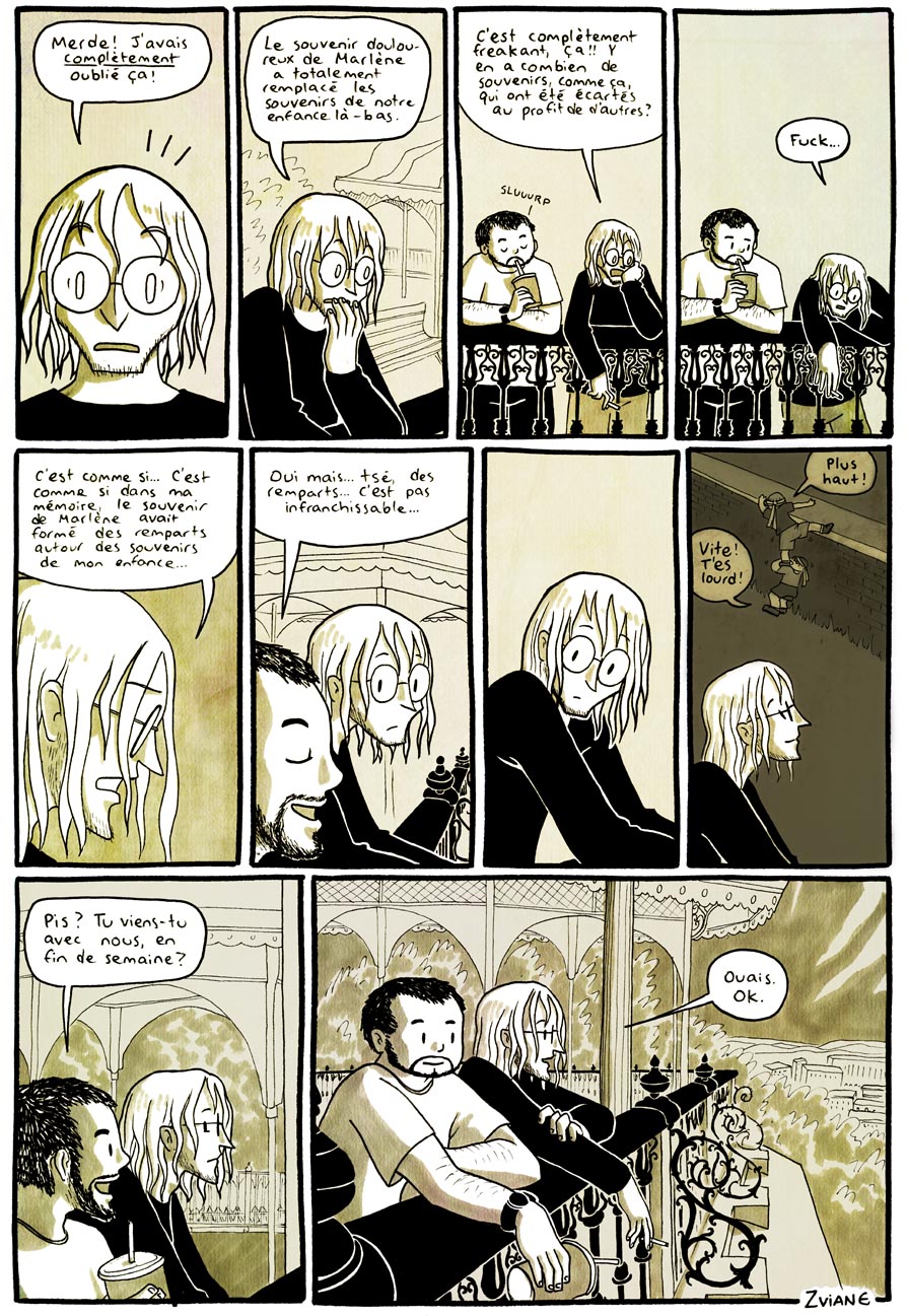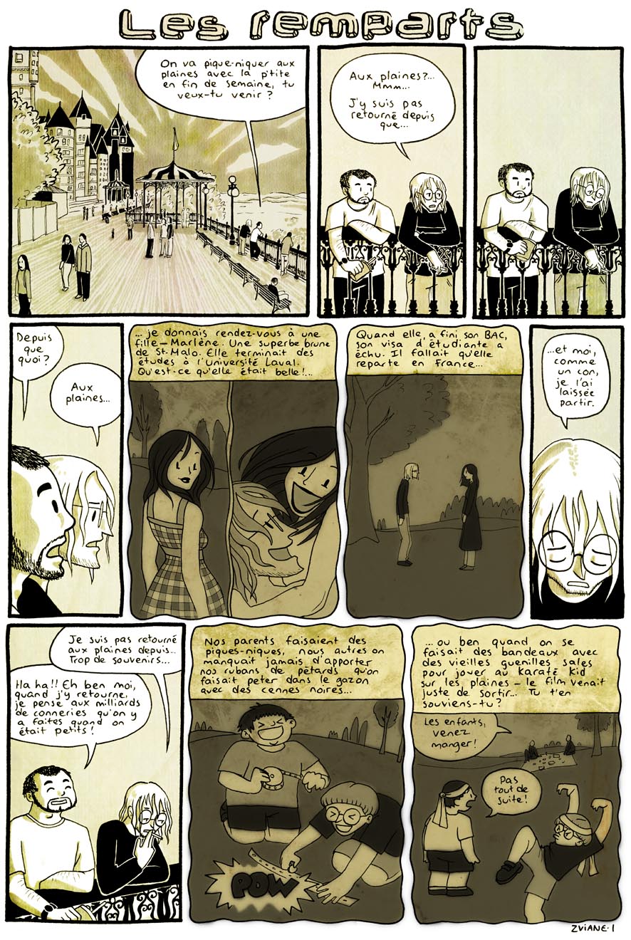 Dessiné pour un concours de BD (dirigé par Thomas-Louis Côté), dont le thème était "Québec/St-Malo: une histoire de remparts". On avait été genre deux à participer, et j'avais gagné. J'ai été invitée au festival Quai des bulles, à St-Malo.