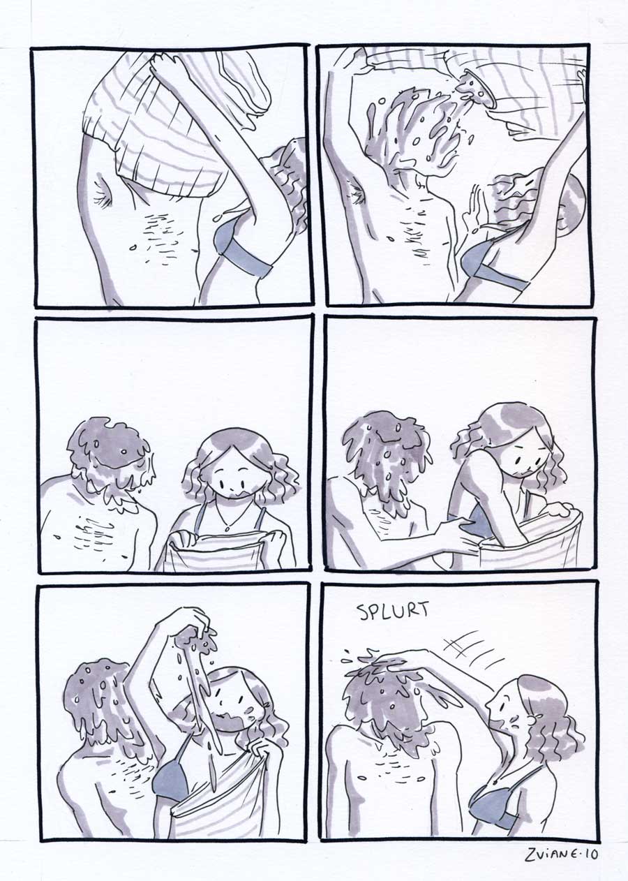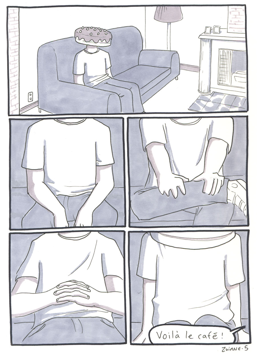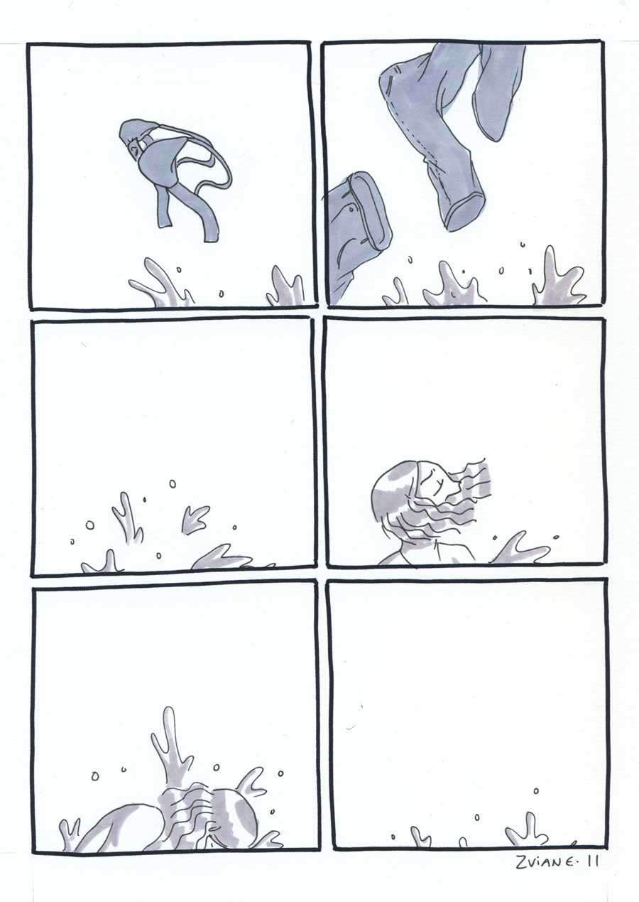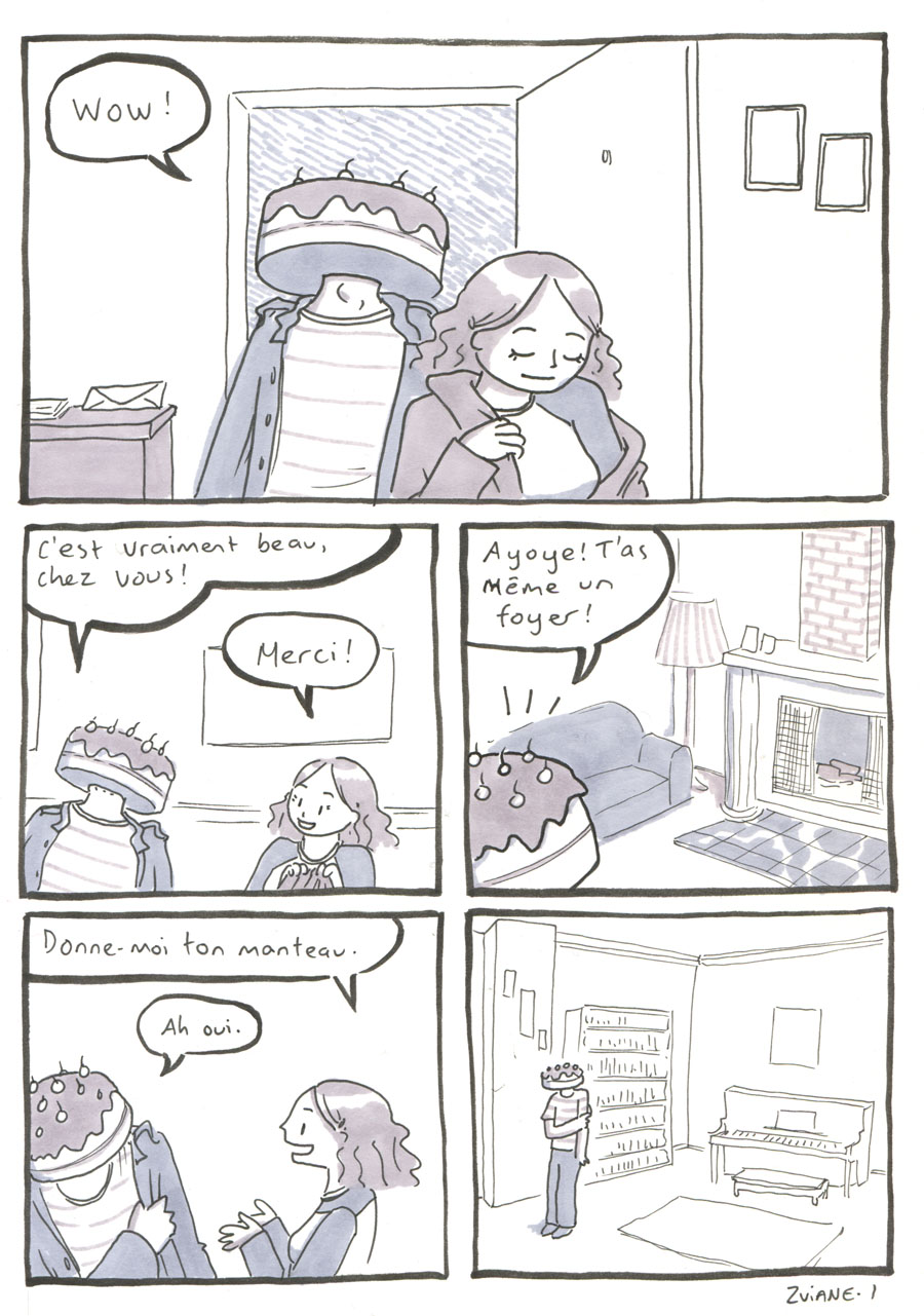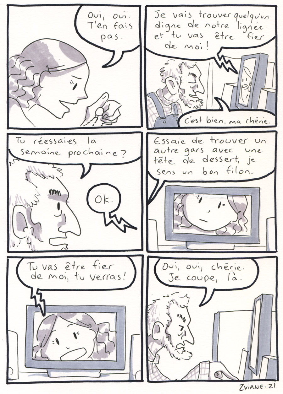 On a organisé les 24h de la BD de montréal, avec Julie Delporte et Christophe Magnette. C'est ma participation. Il fallait ploguer une photo trouvée, d'un gars qui montre un poisson qu'il vient de pêcher. On a fait ça dans les locaux de CHOQ fm dans le temps où c'était sur Sainte-Catherine, et on collait nos pages terminées dans la vitrine au fur et à mesure qu'on les finissait. Il y avait un marathon de radio en même temps. Beaux souvenirs.