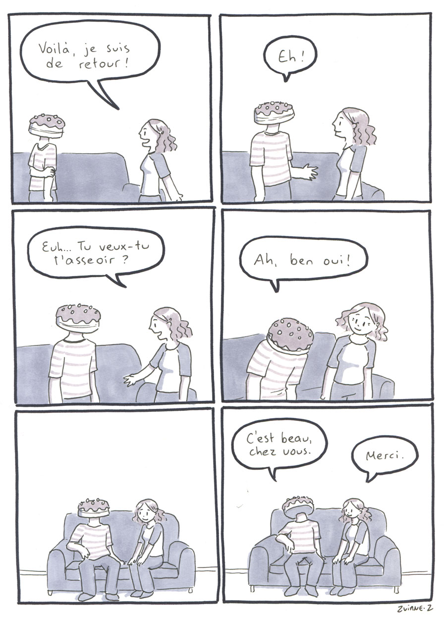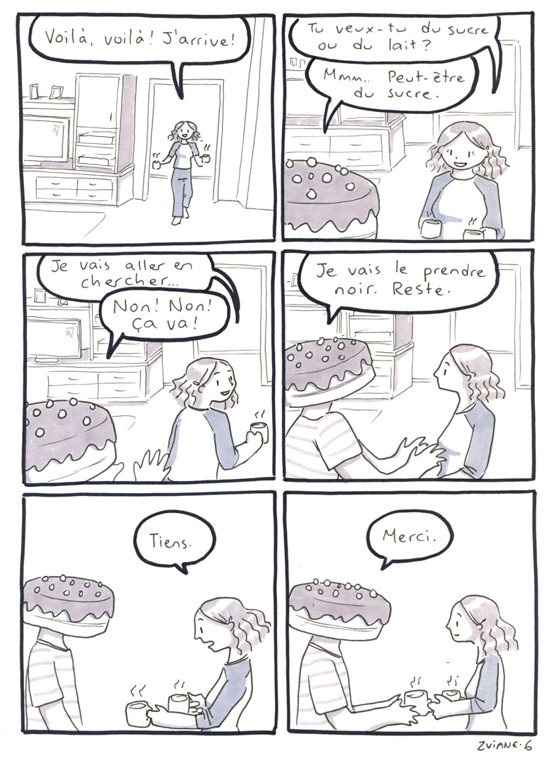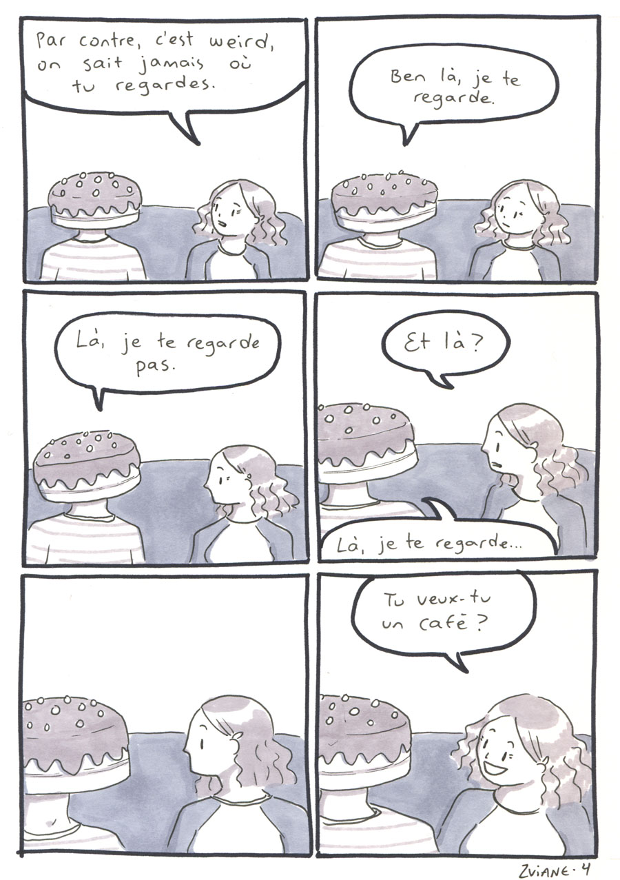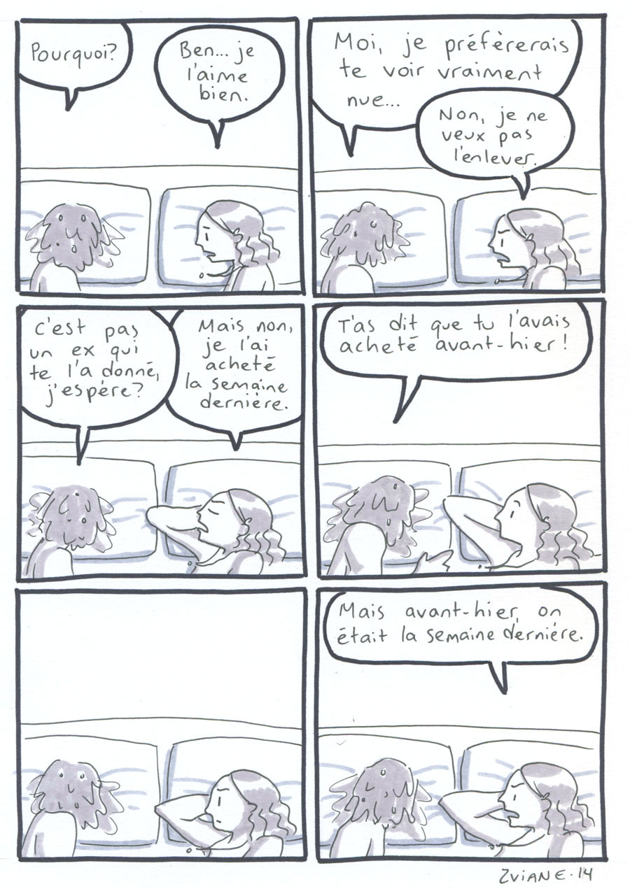 On a organisé les 24h de la BD de montréal, avec Julie Delporte et Christophe Magnette. C'est ma participation. Il fallait ploguer une photo trouvée, d'un gars qui montre un poisson qu'il vient de pêcher. On a fait ça dans les locaux de CHOQ fm dans le temps où c'était sur Sainte-Catherine, et on collait nos pages terminées dans la vitrine au fur et à mesure qu'on les finissait. Il y avait un marathon de radio en même temps. Beaux souvenirs.