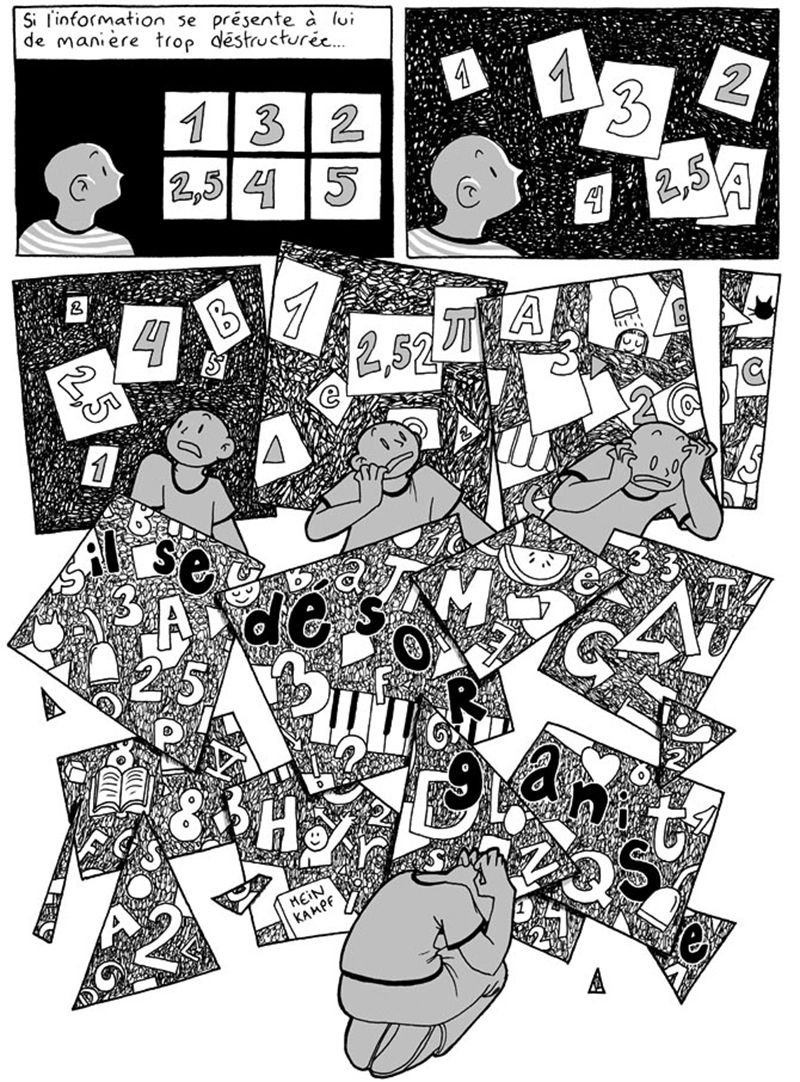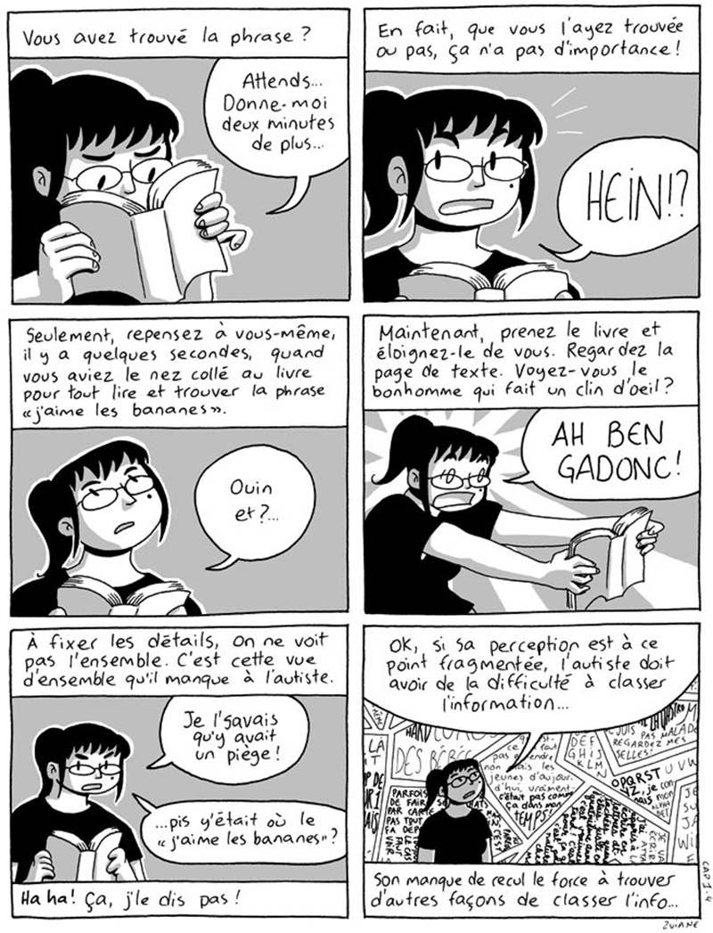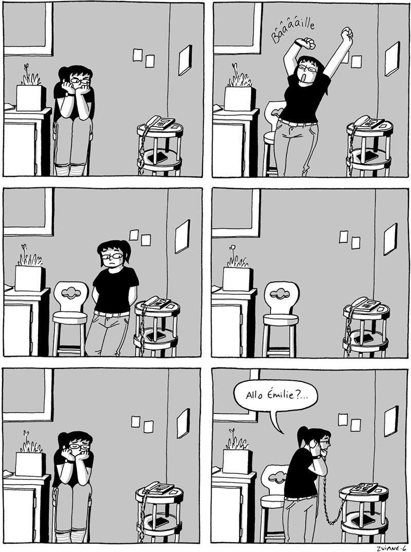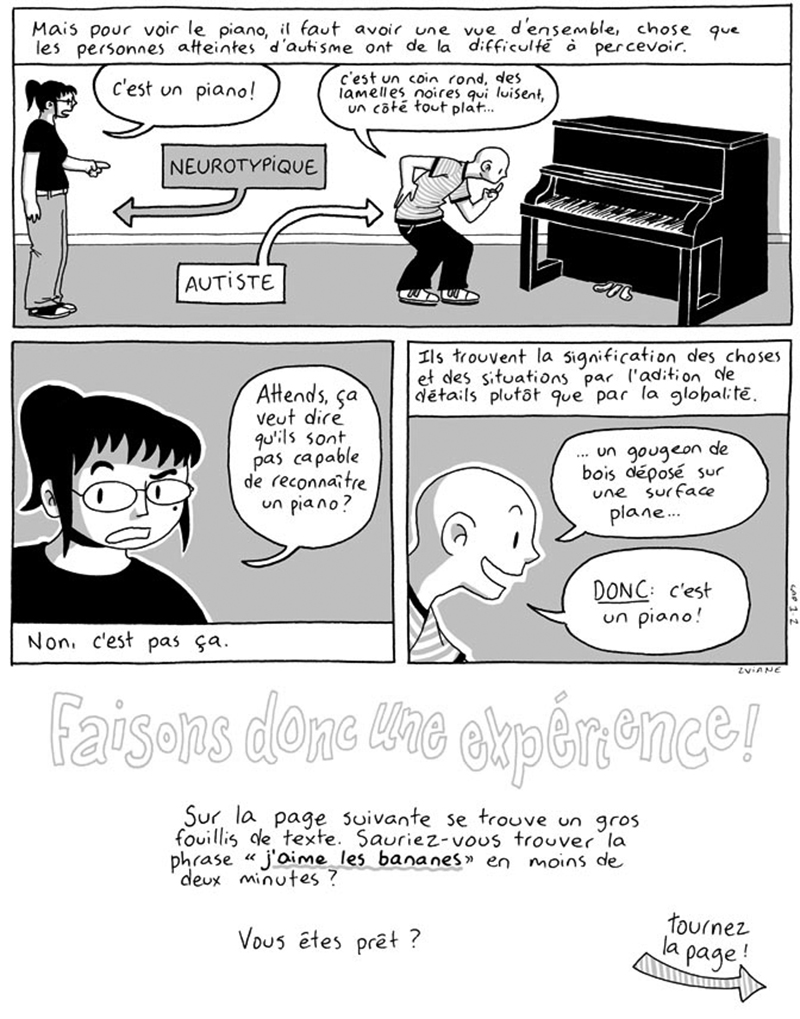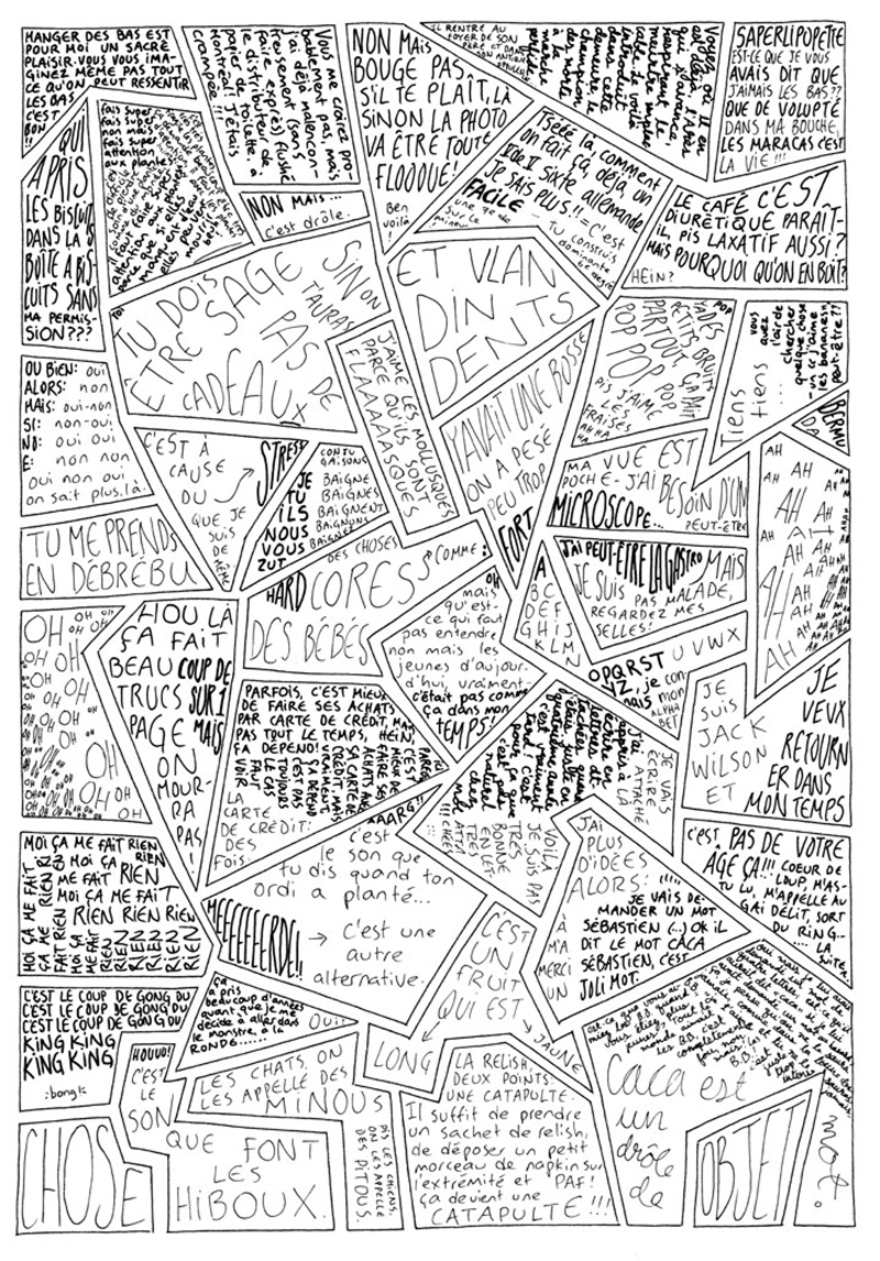 C'était la BD sur laquelle je travaillais quand j'étais en résidence à la maison des auteurs d'Angoulême. C'était basé sur mon expérience de monitrice dans un camp d'été pour autistes. J'ai scénarisé beaucoup, beaucoup, beaucoup de pages, et finalement je me suis rendue compte que j'allais pas du tout dans la bonne direction. J'ai fini par tout mettre dans le congélateur.