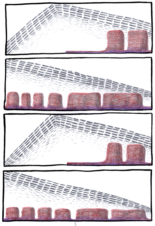 Je donnais un atelier de médiation culturelle dans le cadre de ma résidence à Angoulême. J'avais juste une étudiante, mais elle était motivée. On a fait une BD abstraite sur le Confutatis du Requiem de Mozart.