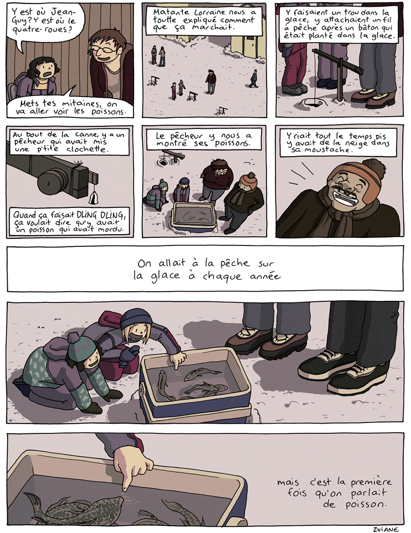 Pour le concours Glénat Québec, cette fois-ci j'ai gagné le 3e ou 4e prix, m'en rappelle plus. Publié dans le collectif Histoires de pêche.