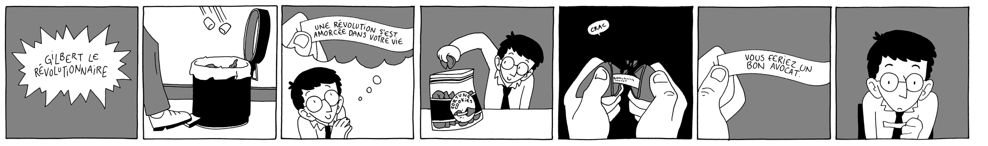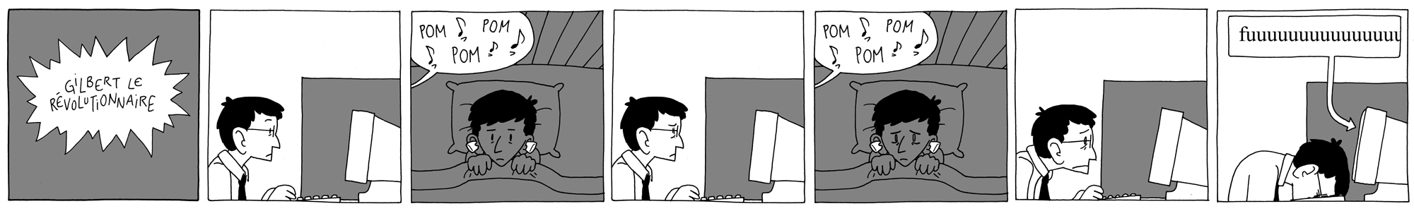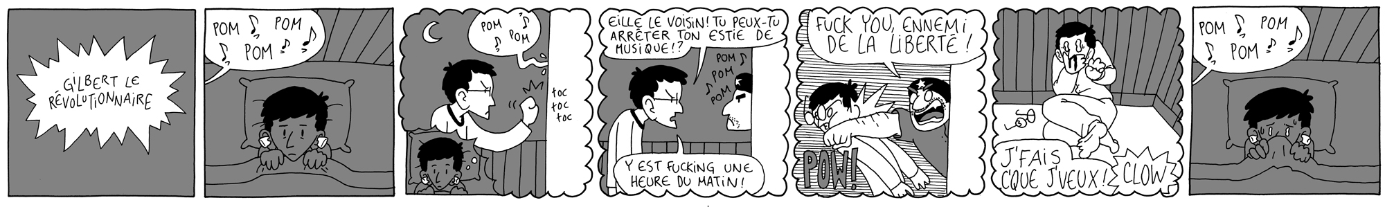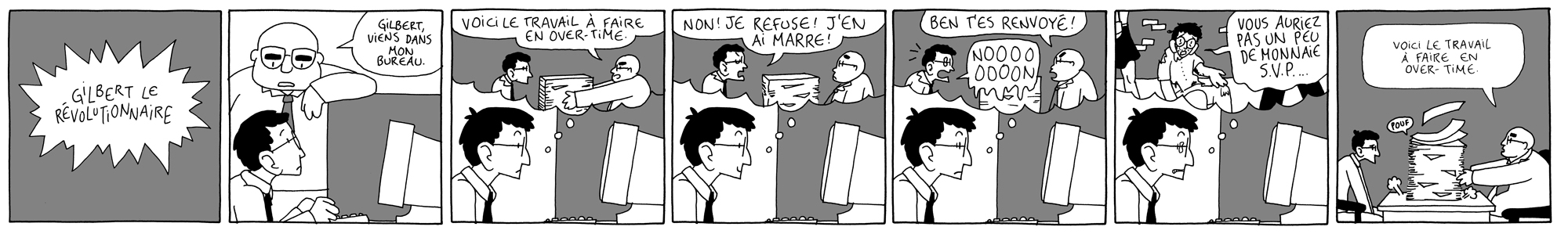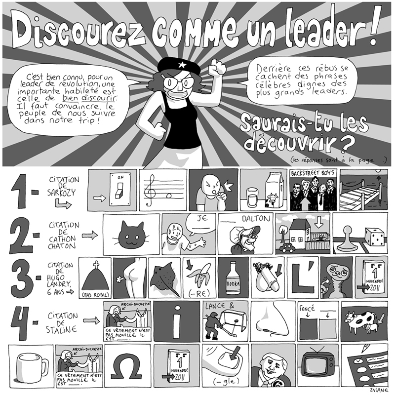 On a organisé les 48h de la BD à notre atelier. C'était pas comme les 24h, parce qu'on pouvait dormir - et c'était plus collaboratif. Et c'était destiné à être imprimé sous forme de journal gratuit. J'ai fait deux contributions:une série de strips et des rébus. Il me semble que le thème c'était quelque chose du genre "la révolution".