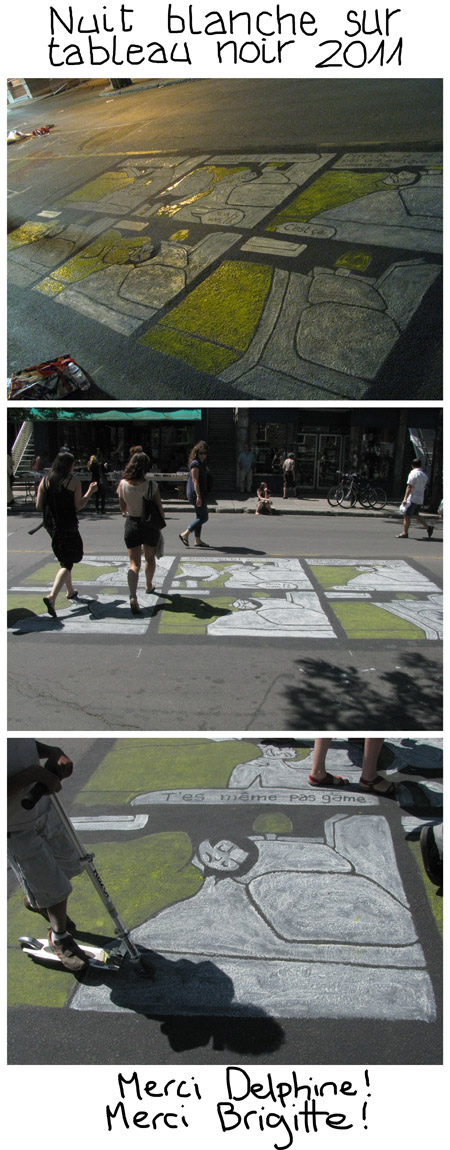 BD sans titre, qui a été peinte sur l'asphalte de l'Avenue Mont-Royal lors de l'événement Nuit blanche sur tableau noir.