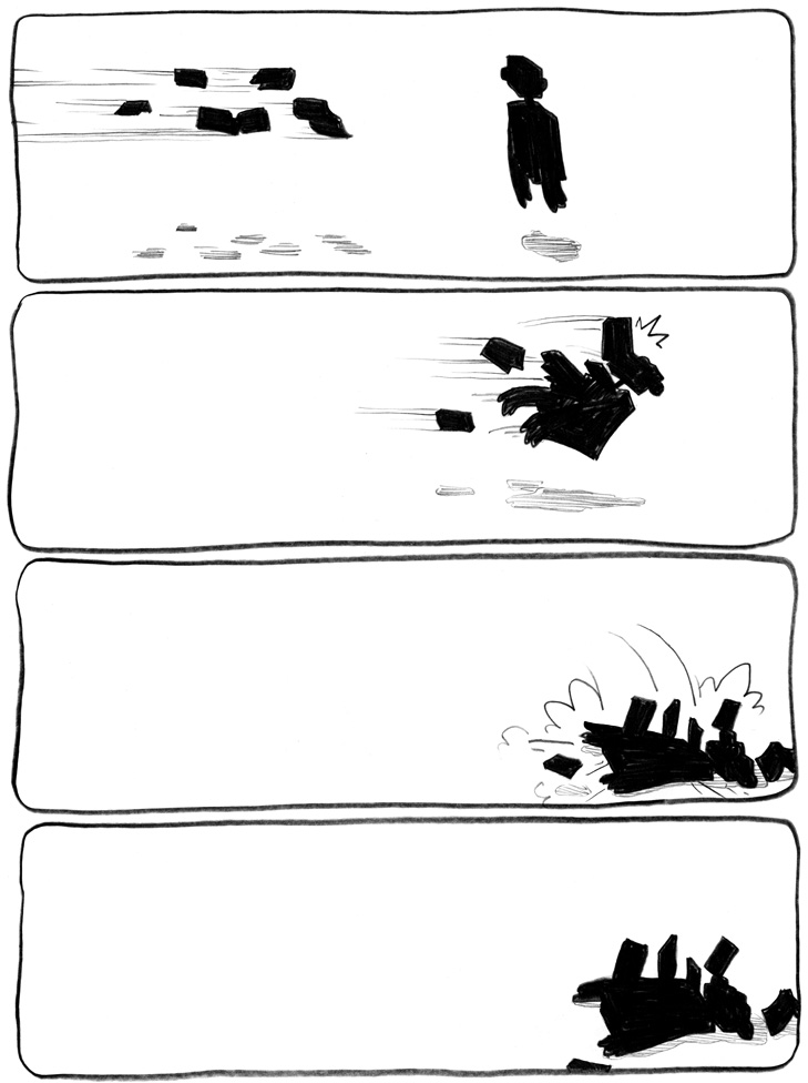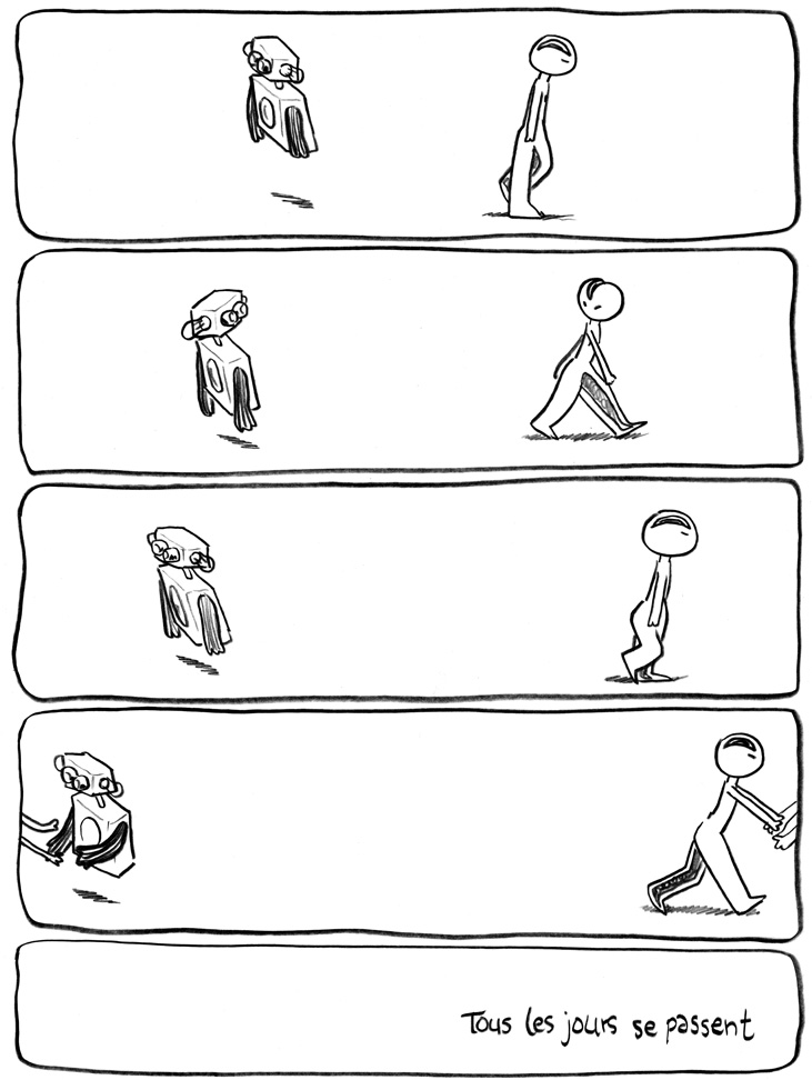 Vincent m'envoyait des courts poèmes en texto sur mon flip. J'ai fait cette BD à partir de quelques-uns d'entre eux.