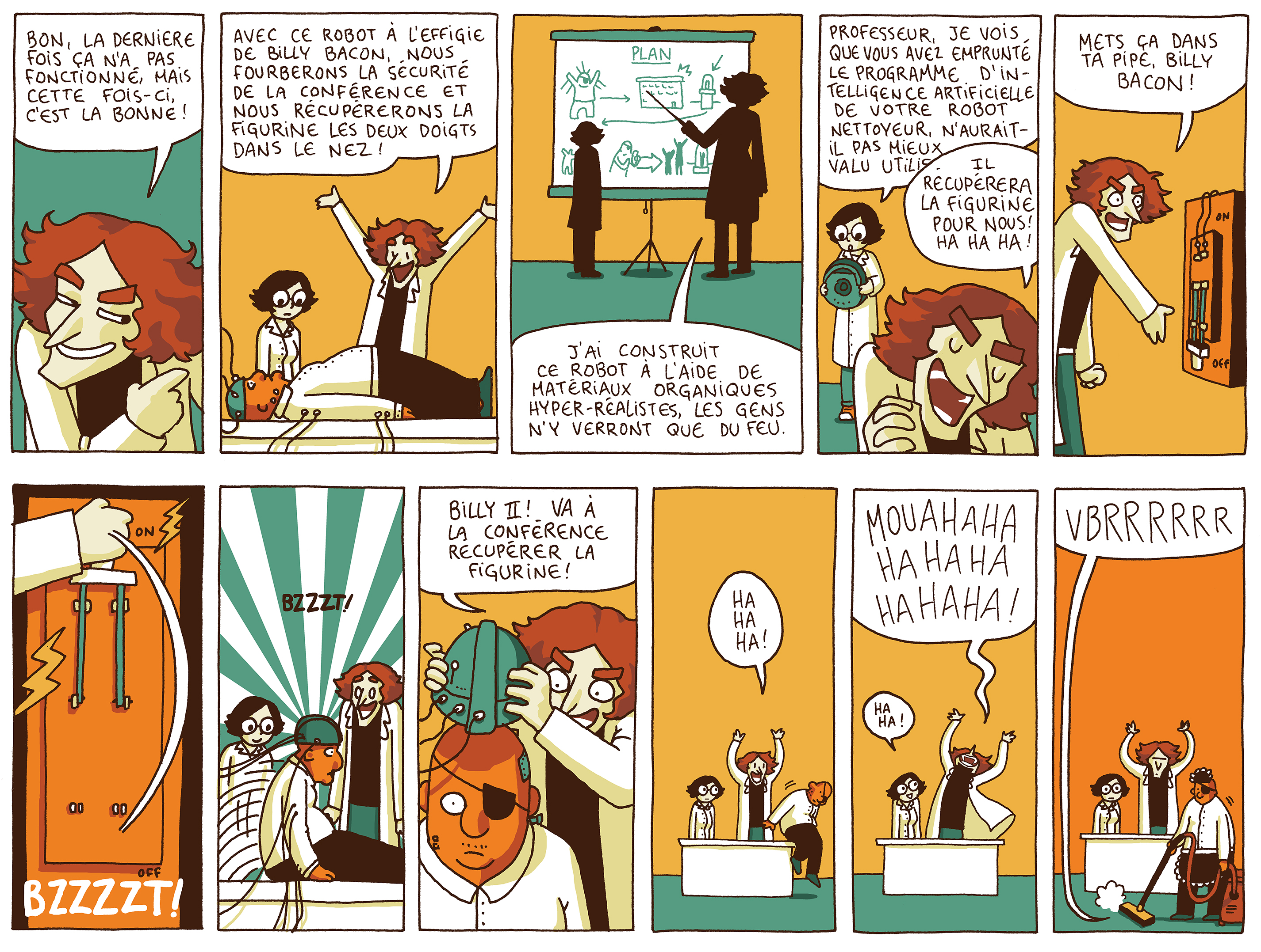 Une gig très le fun. C'était une commande d'un boîte de comm pour une pub pour l'ordre des ingénieurs du Québec, si ma mémoire est bonne. C'était pour montrer ce que font les ingénieurs, en montrant quelqu'un qui est un mauvais ingénieur. Scénarisé à deux avec Luc Bossé.