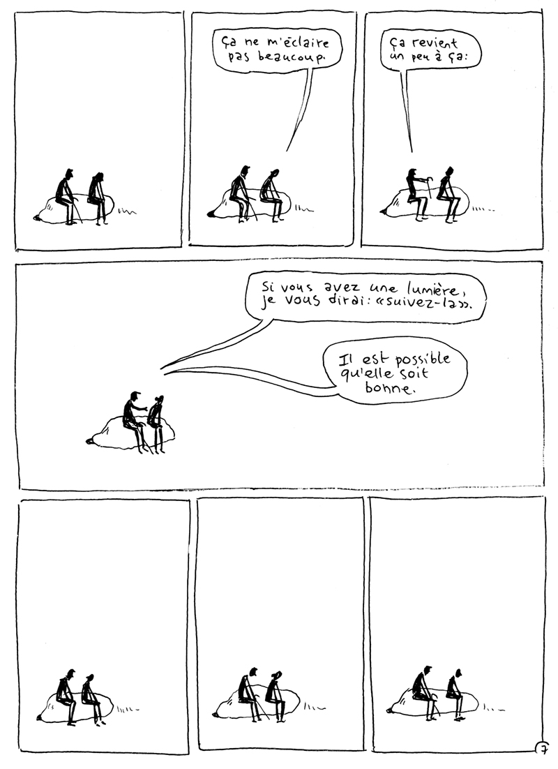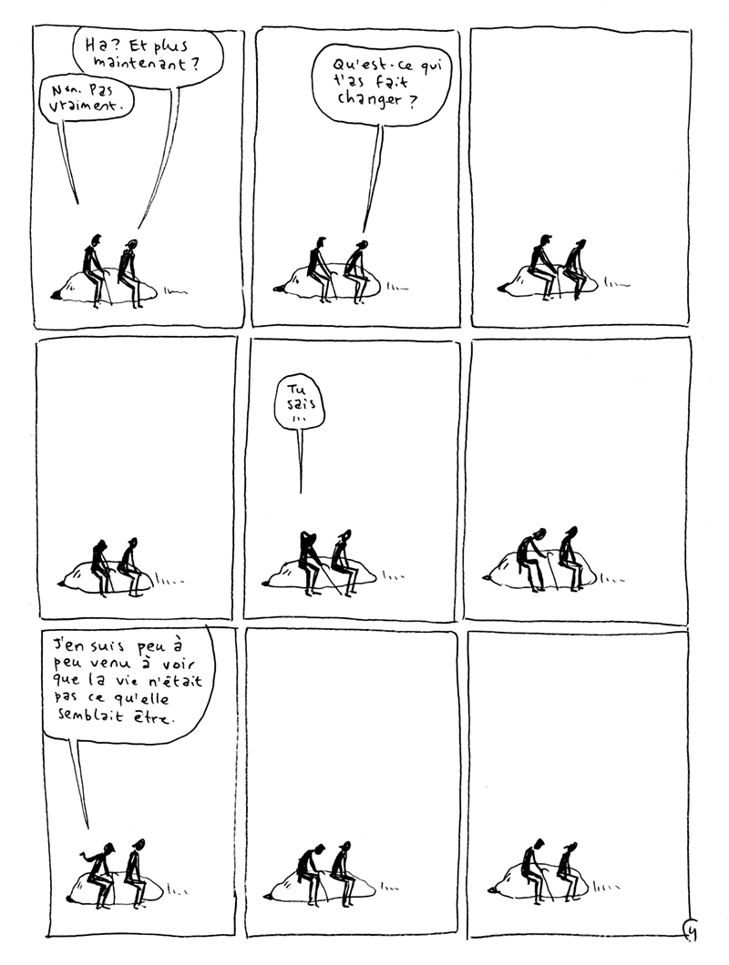 Une autre BD faite à partir d'écrits de Wittgenstein (ou plutôt, une conversation rapportée par quelqu'un d'autre). Cette BD est tellement, tellement, tellement importante pour moi. Elle est prémonitoire de ce comment j'allais me sentir après avoir fait la jungle.