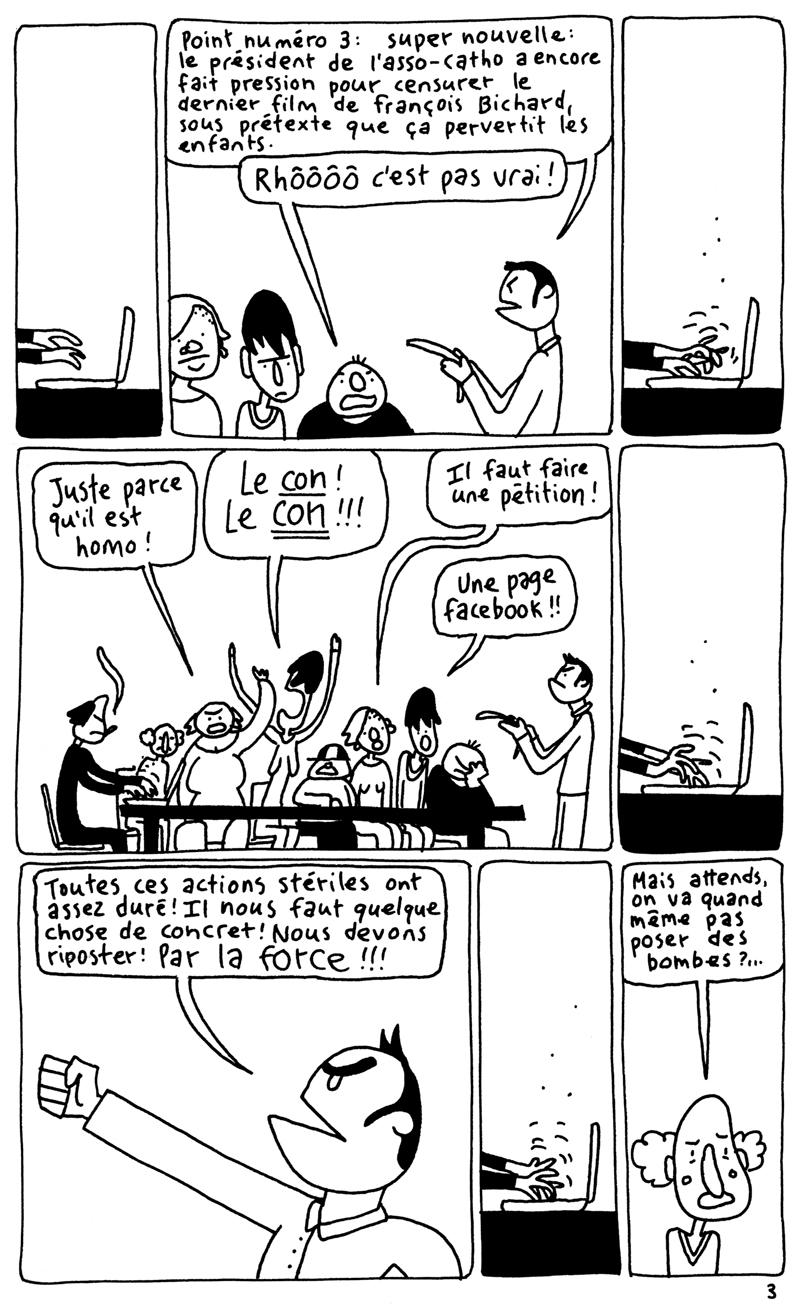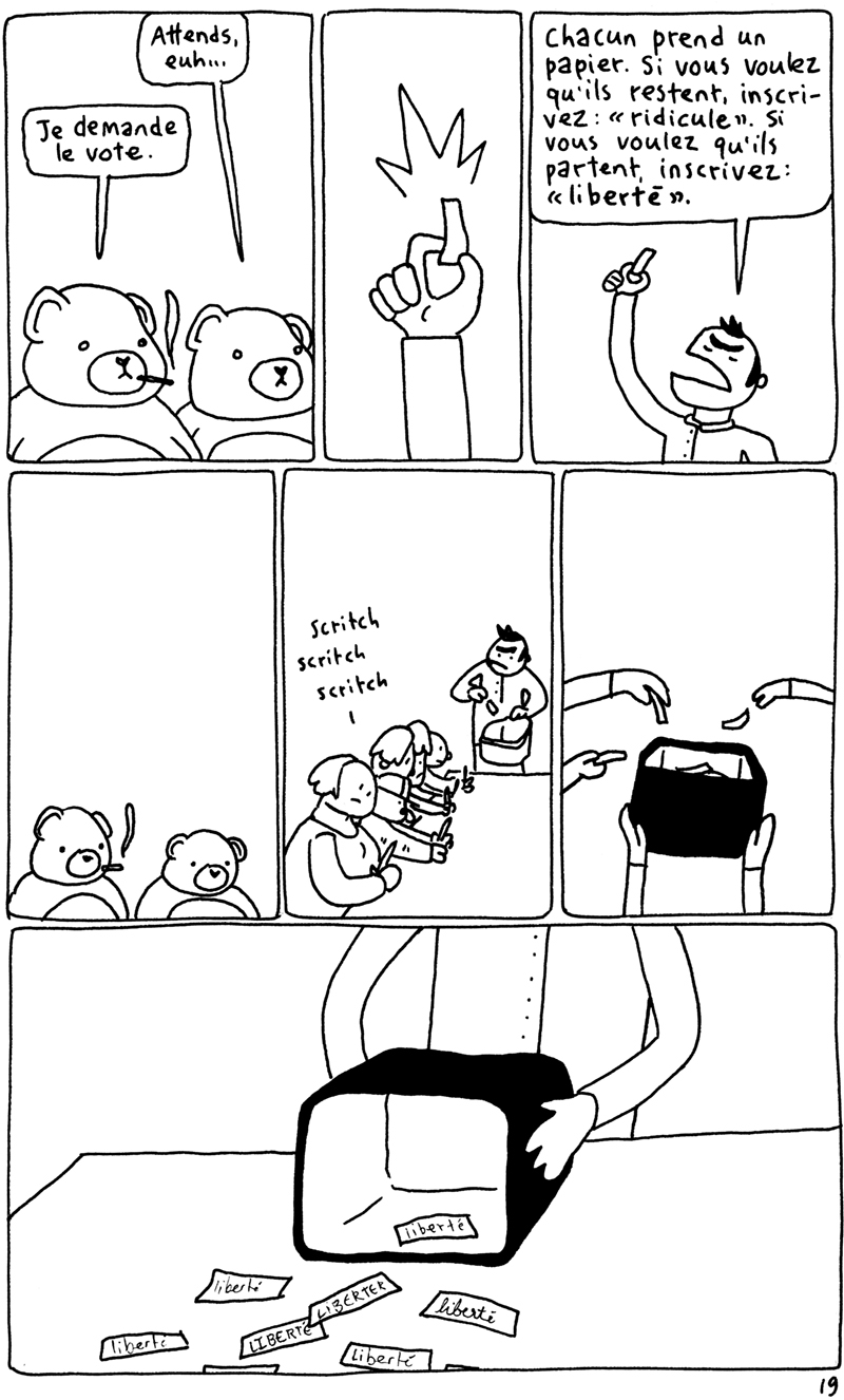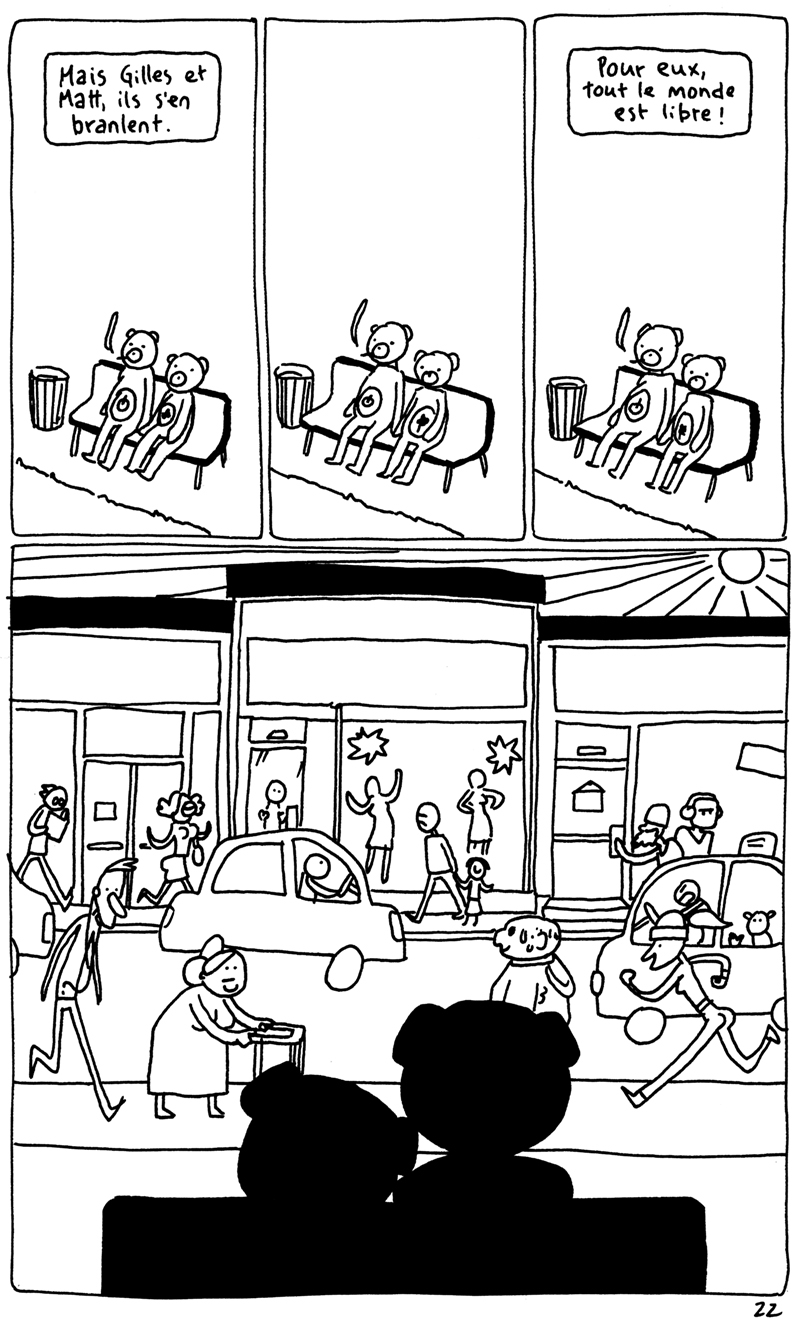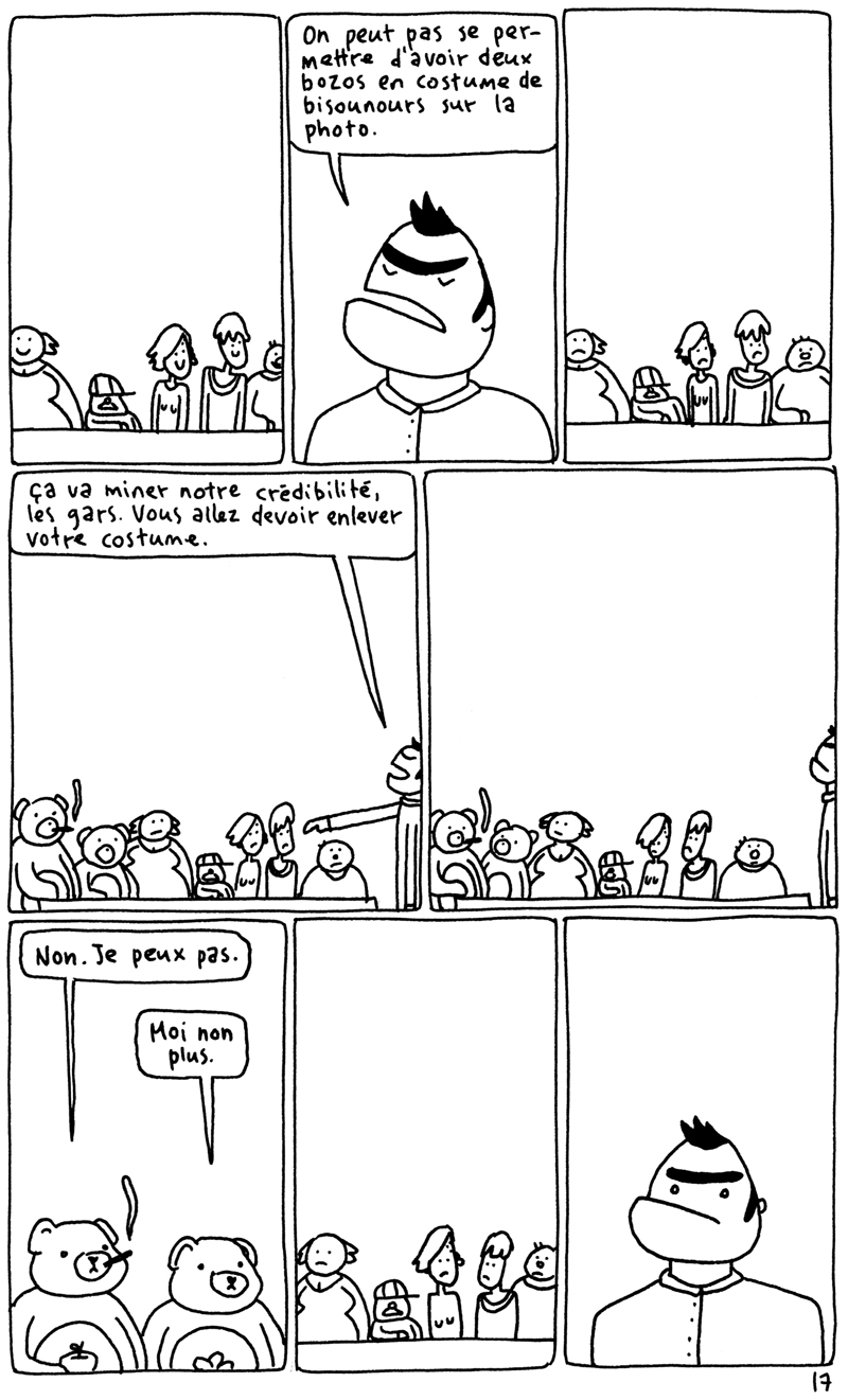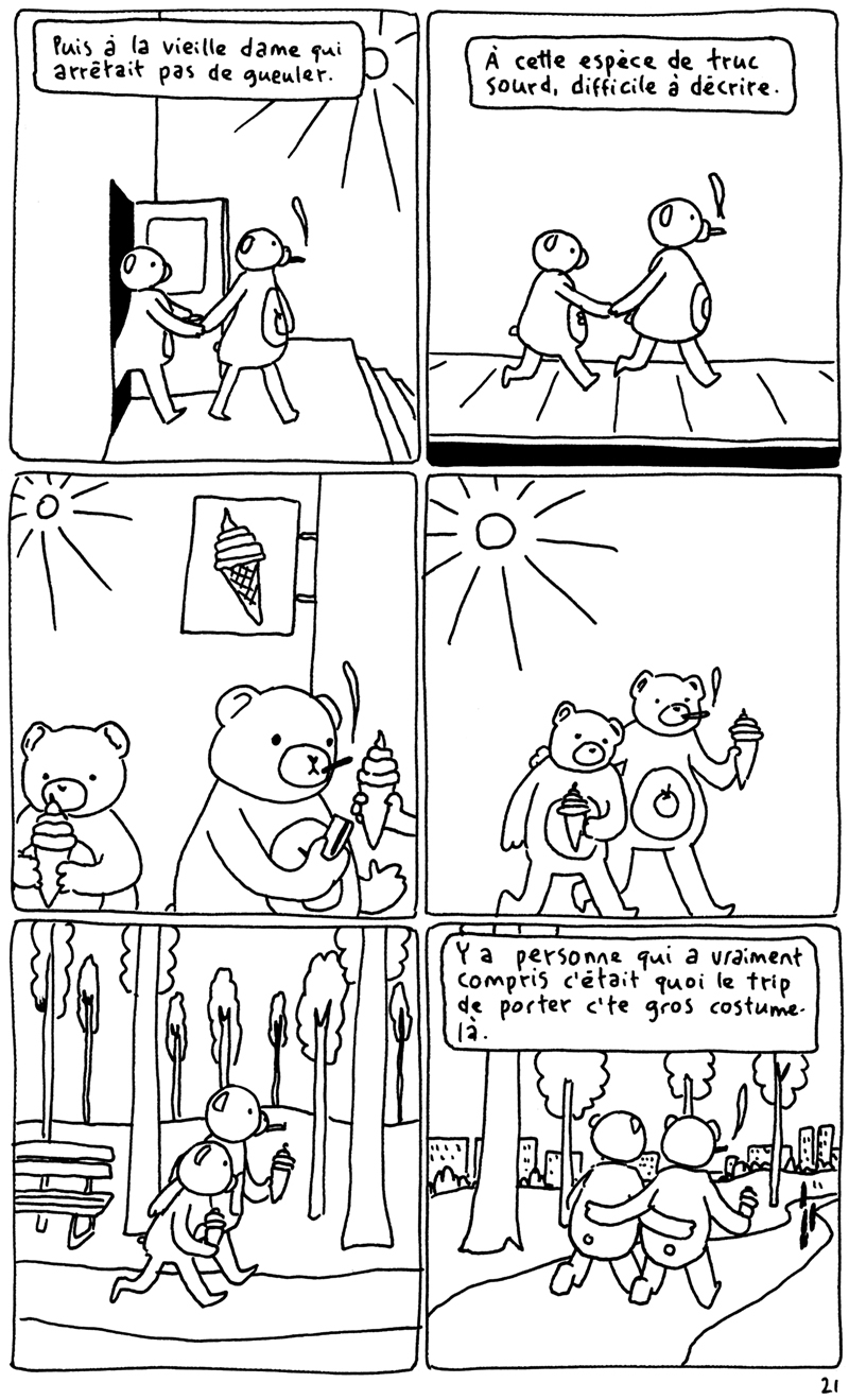 Les 24h de la BD d'Angoulême, fait sur place à la maison des auteurs. La contrainte était chiante. Elle partait d'un fait divers macabre (un madame qui noie son chien dans un aéroport), et on nous imposait de faire une case muette sur deux. Ça donne un rythme bancal. J'aime pas trop cette BD. (il manque la couve??) (il manque la page 5?????)