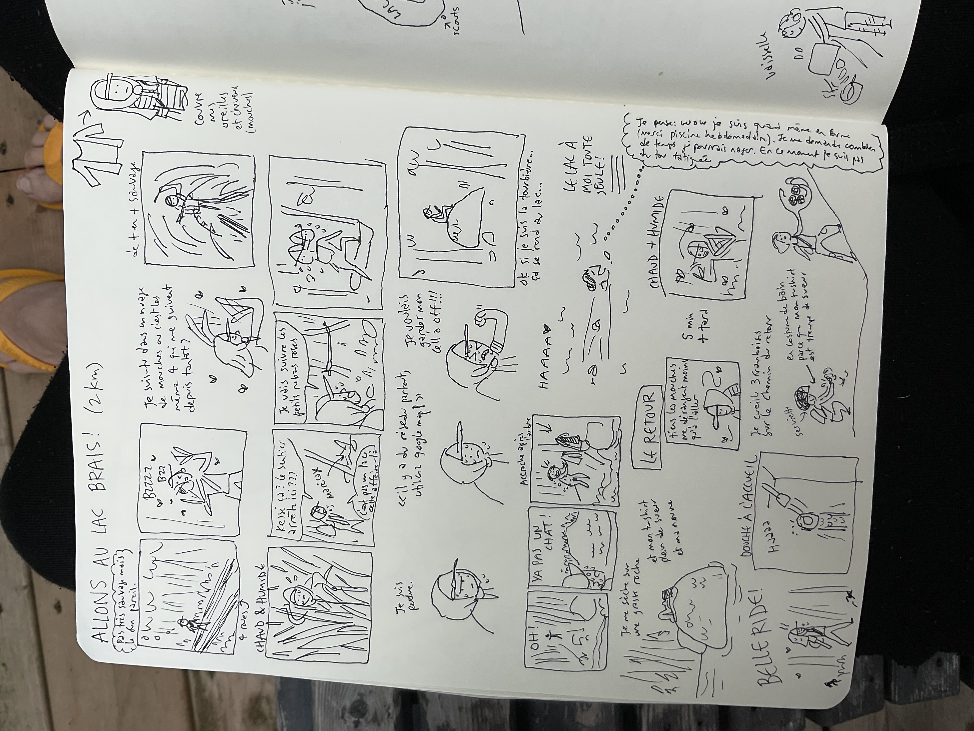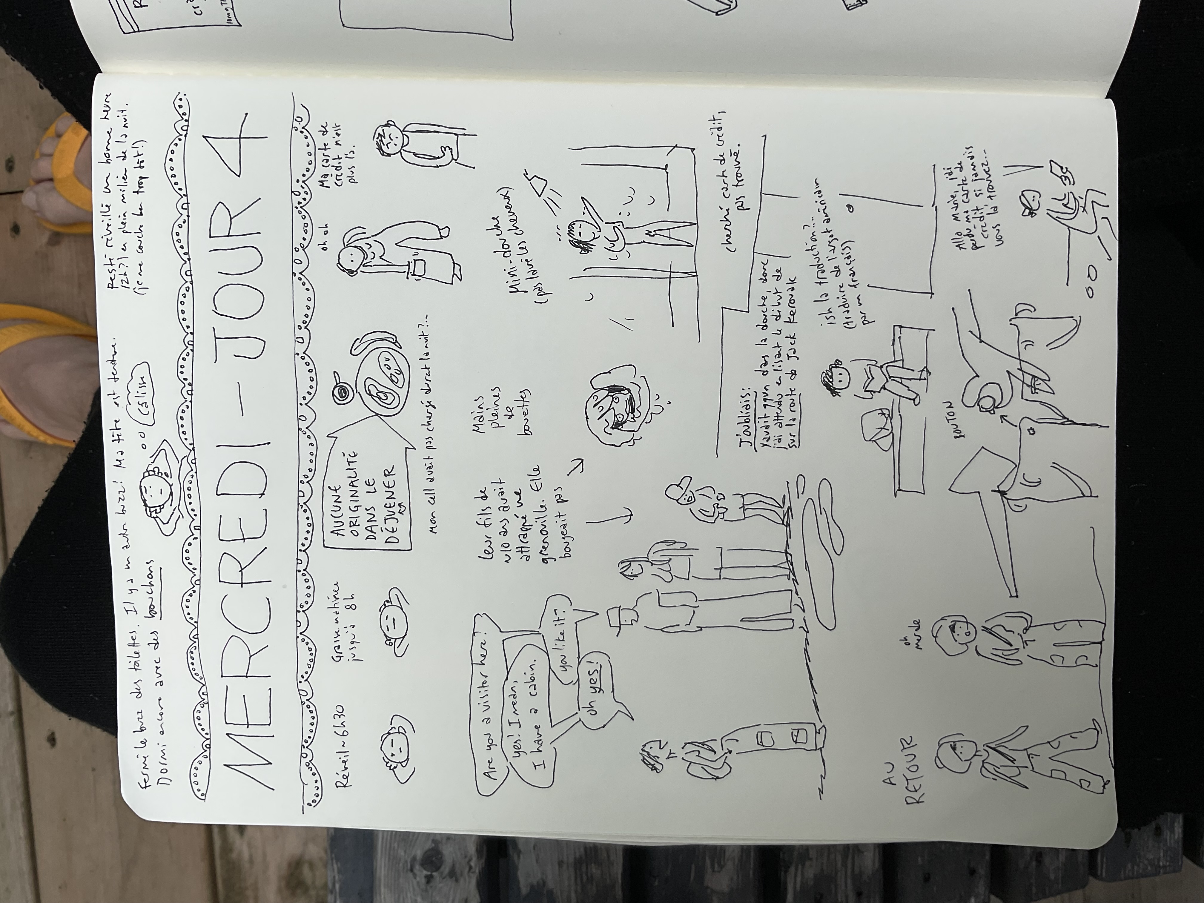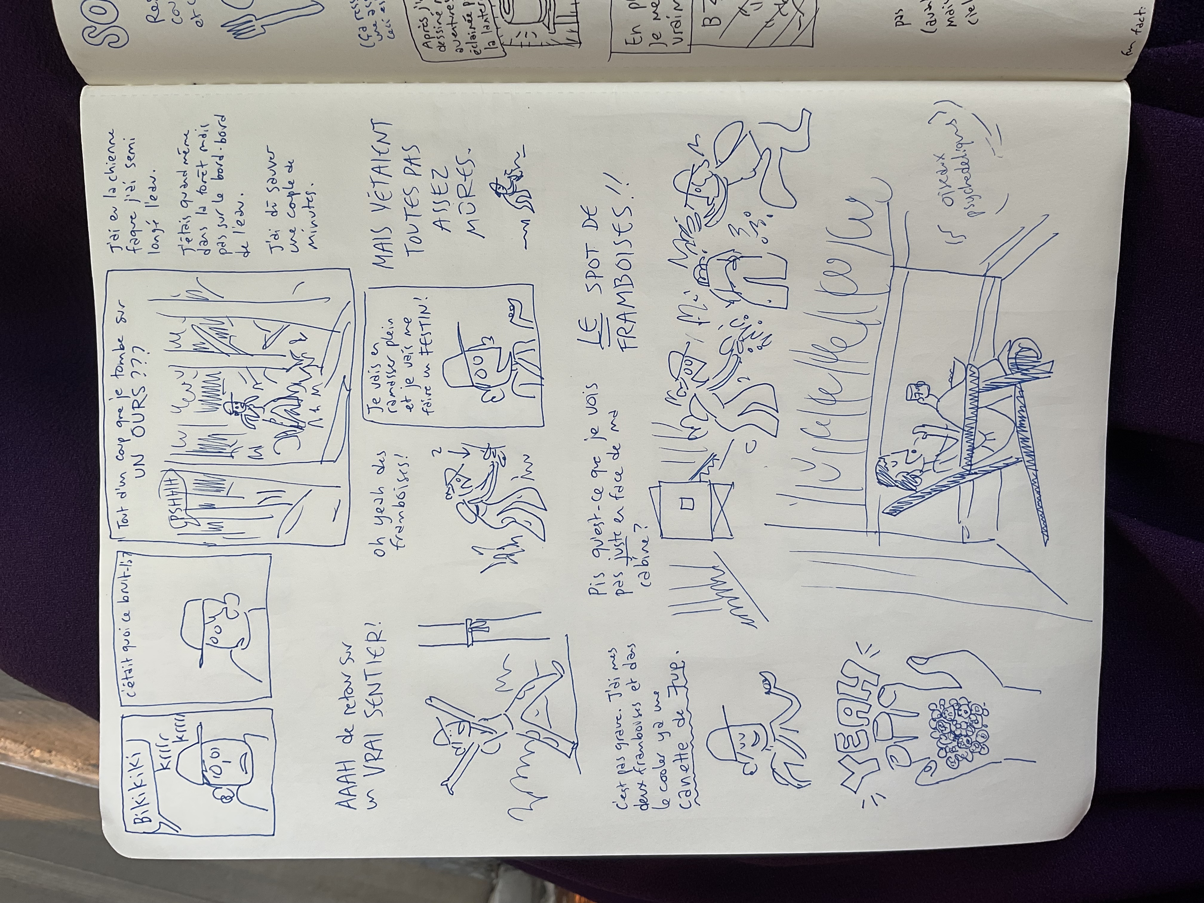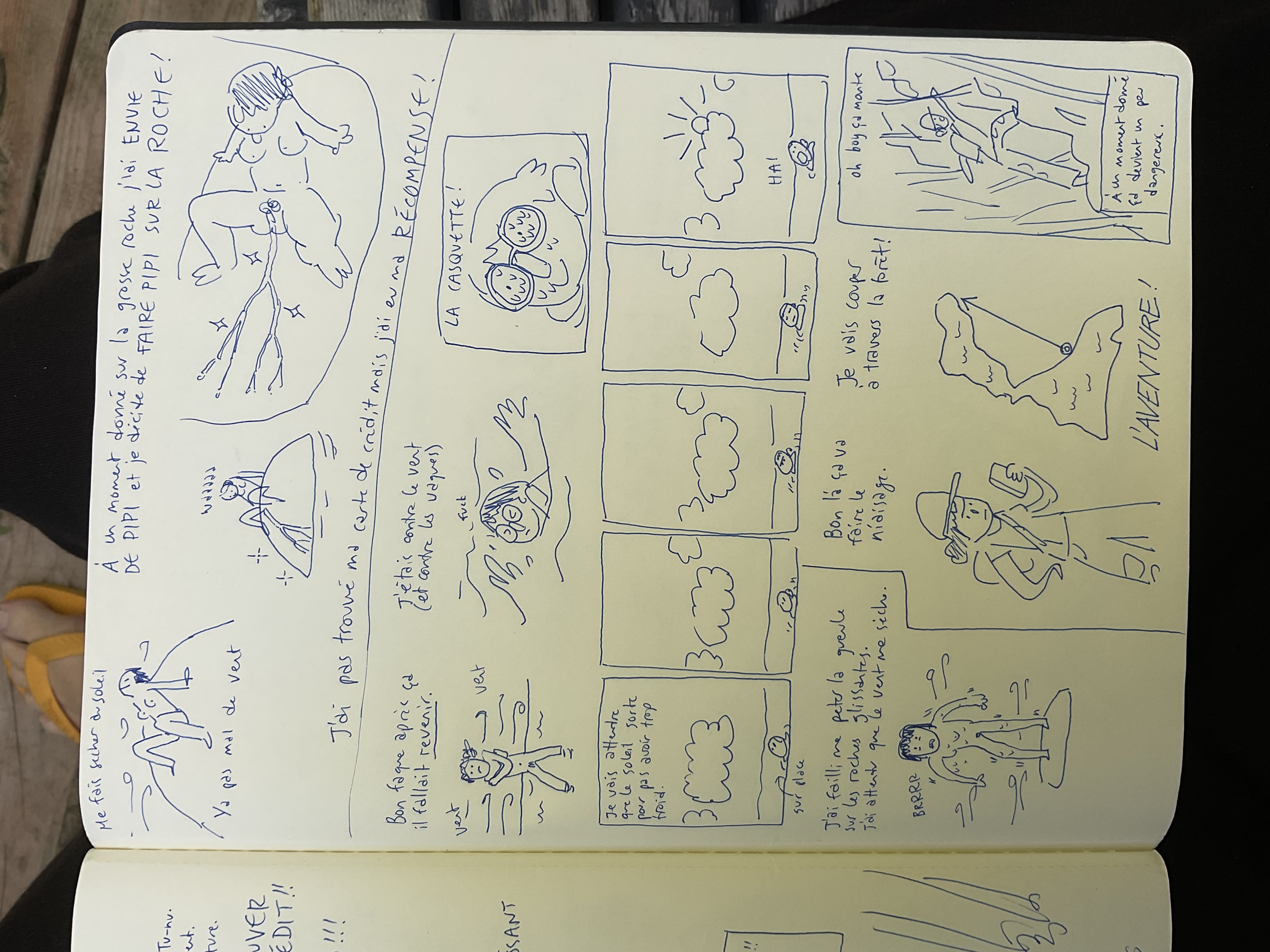 J'ai tenu un petit journal dessiné quand je suis allée m'enfermer dans le bois pendant une semaine (non un peu moins qu'une semaine). Ya du tout-nu!!