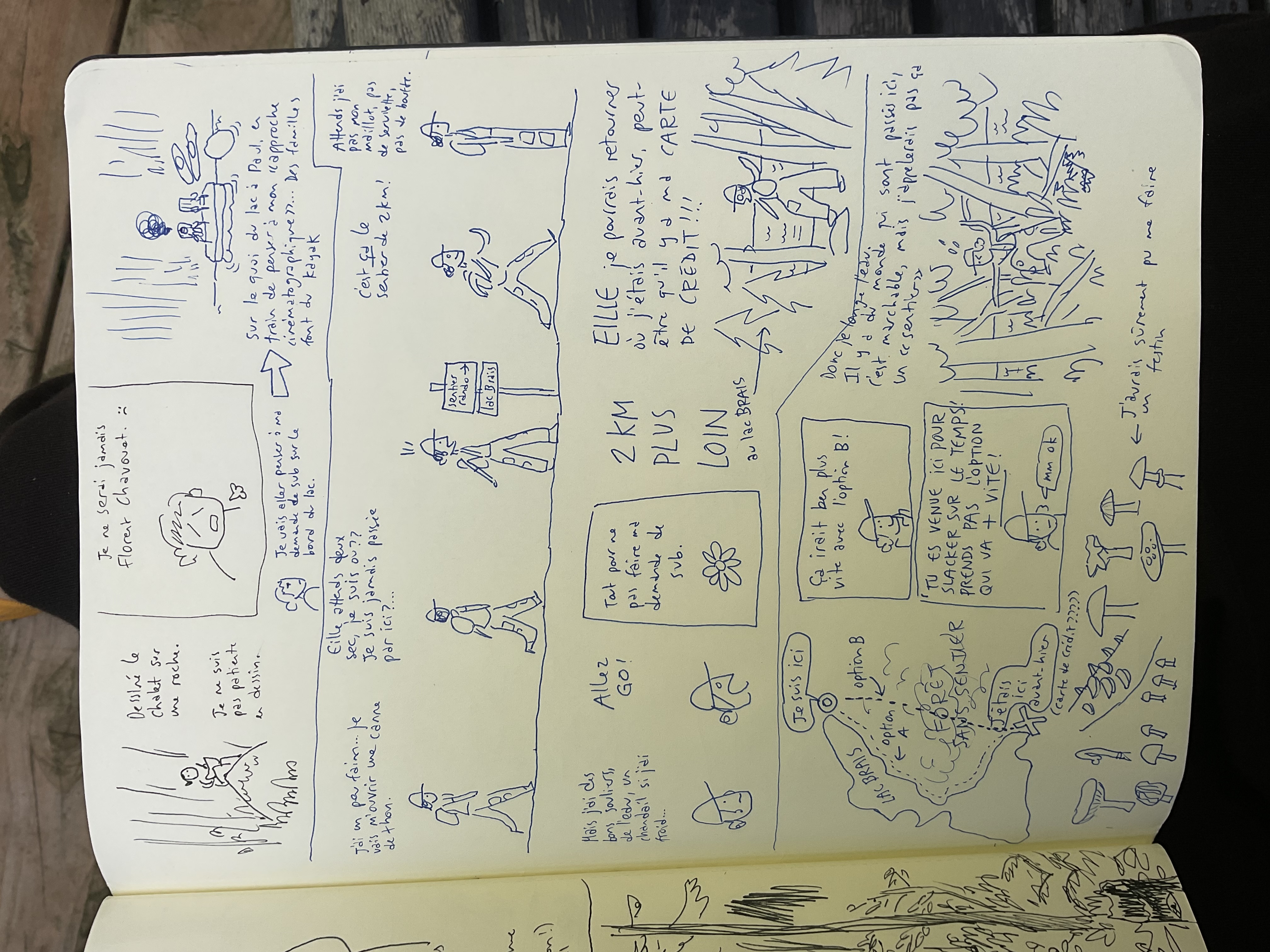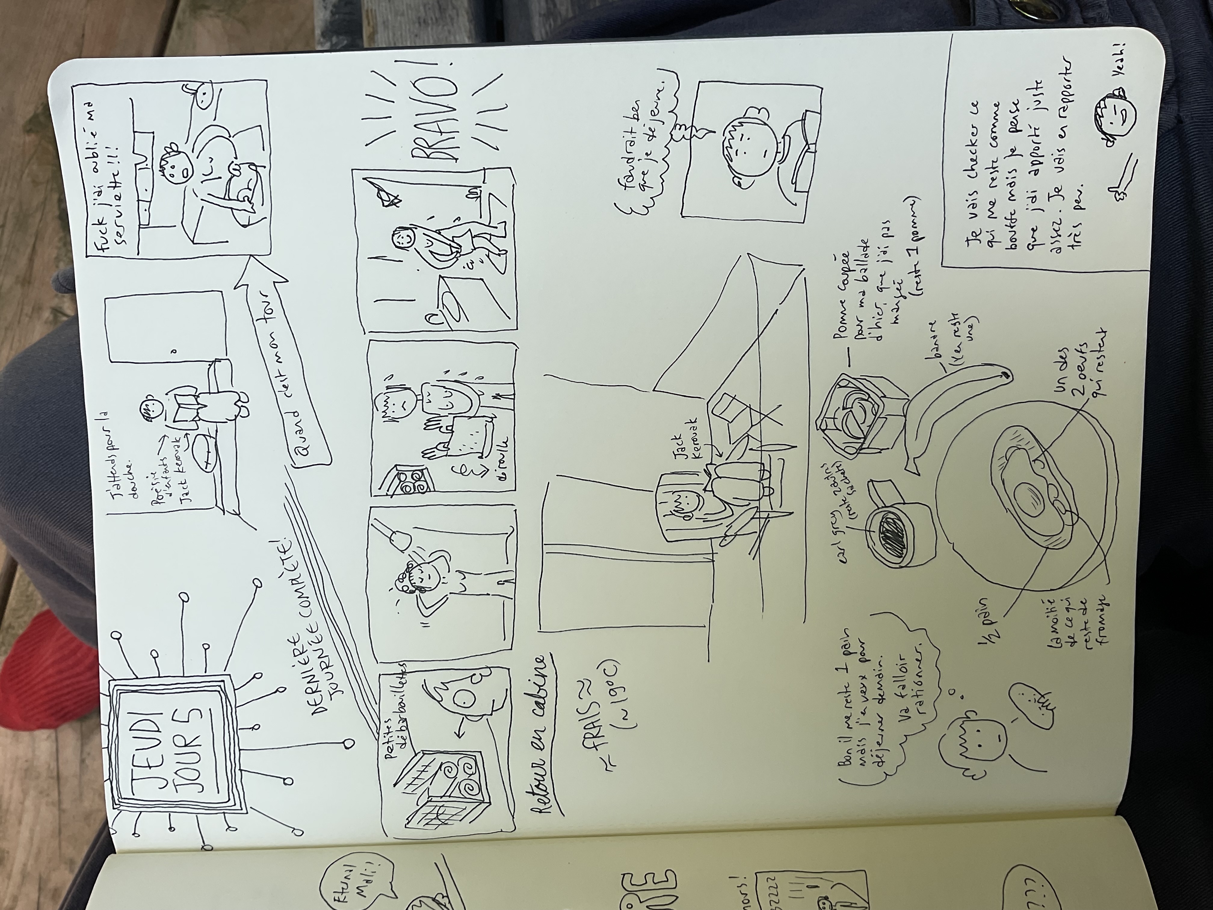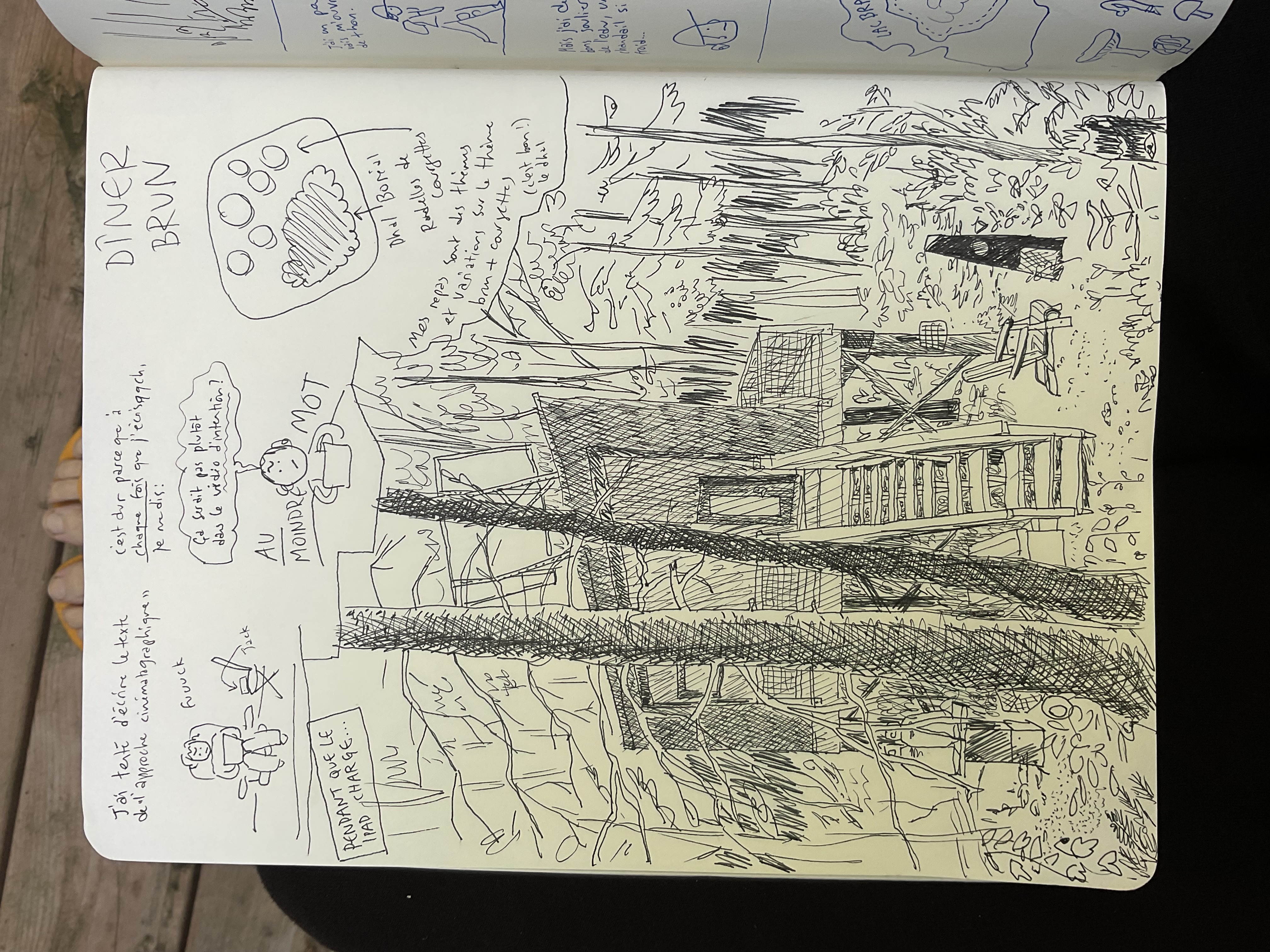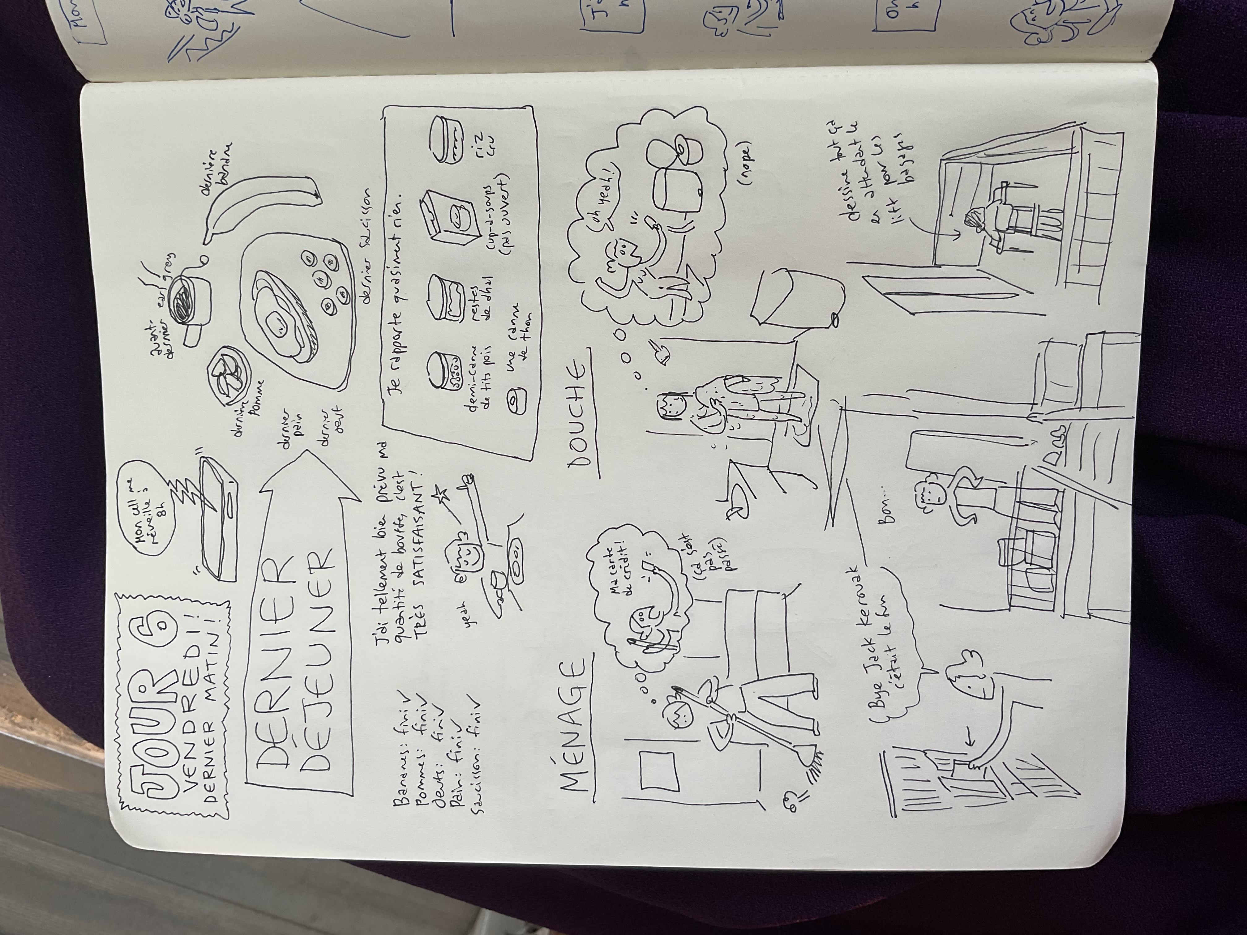 J'ai tenu un petit journal dessiné quand je suis allée m'enfermer dans le bois pendant une semaine (non un peu moins qu'une semaine). Ya du tout-nu!!