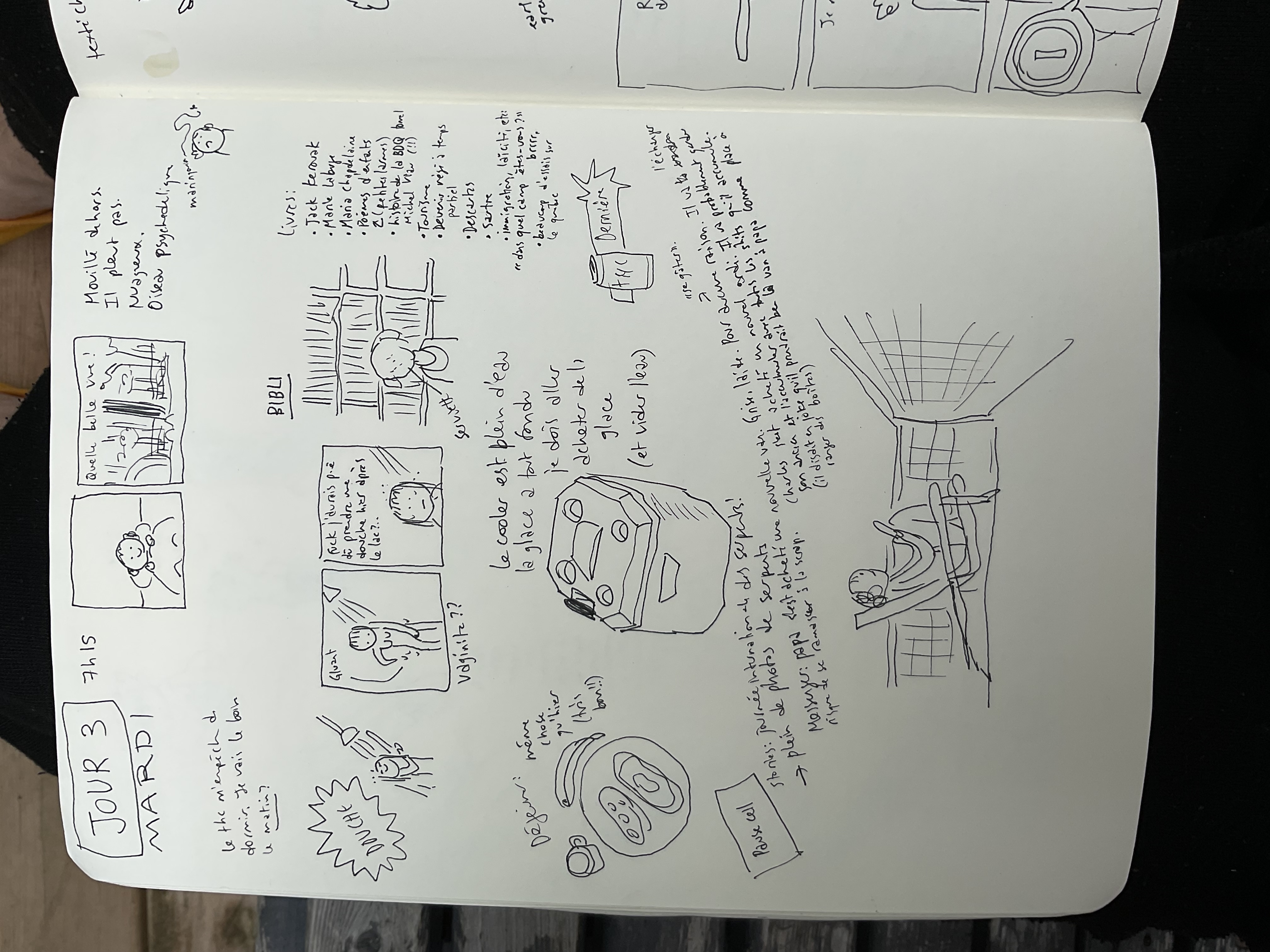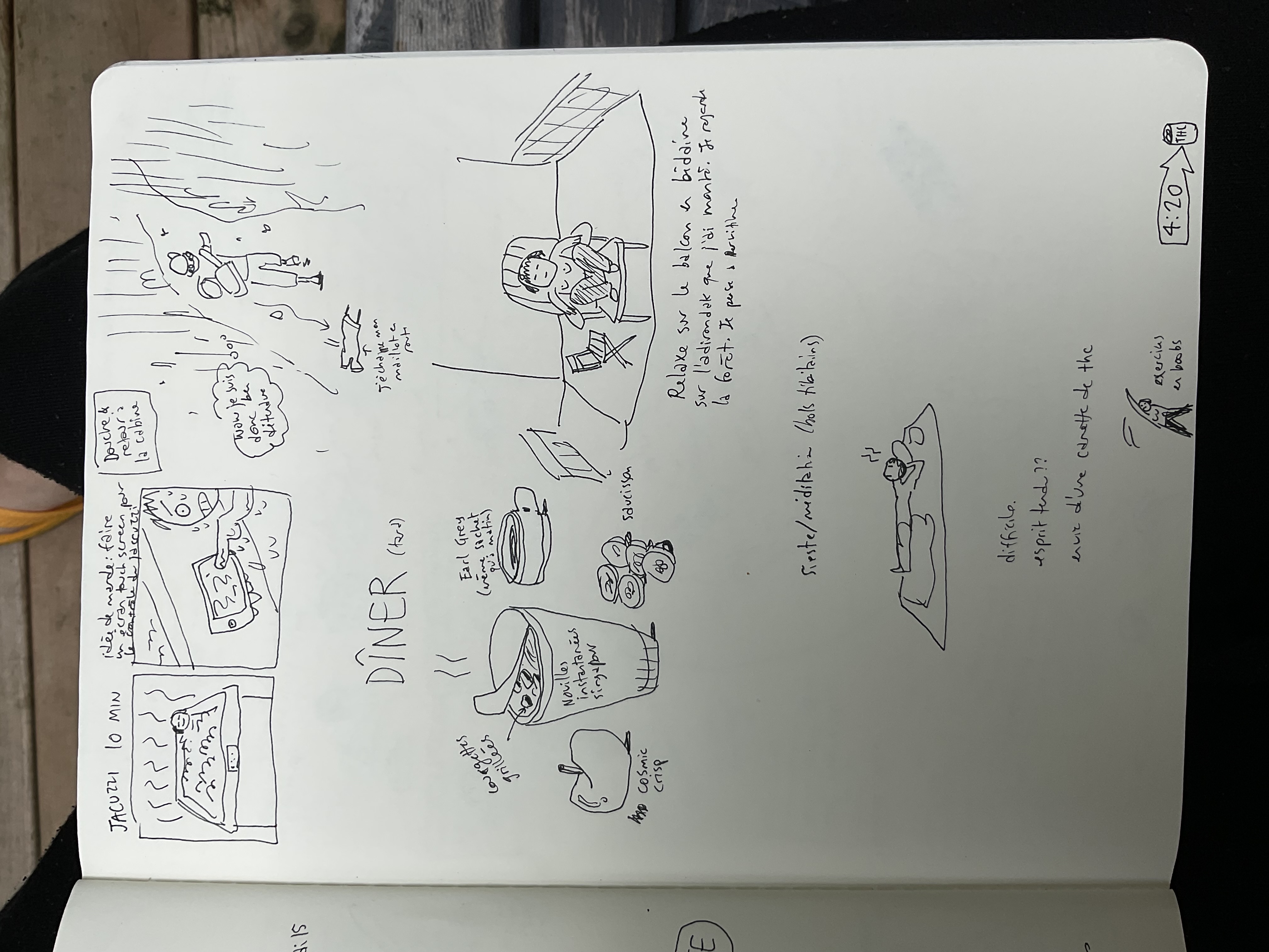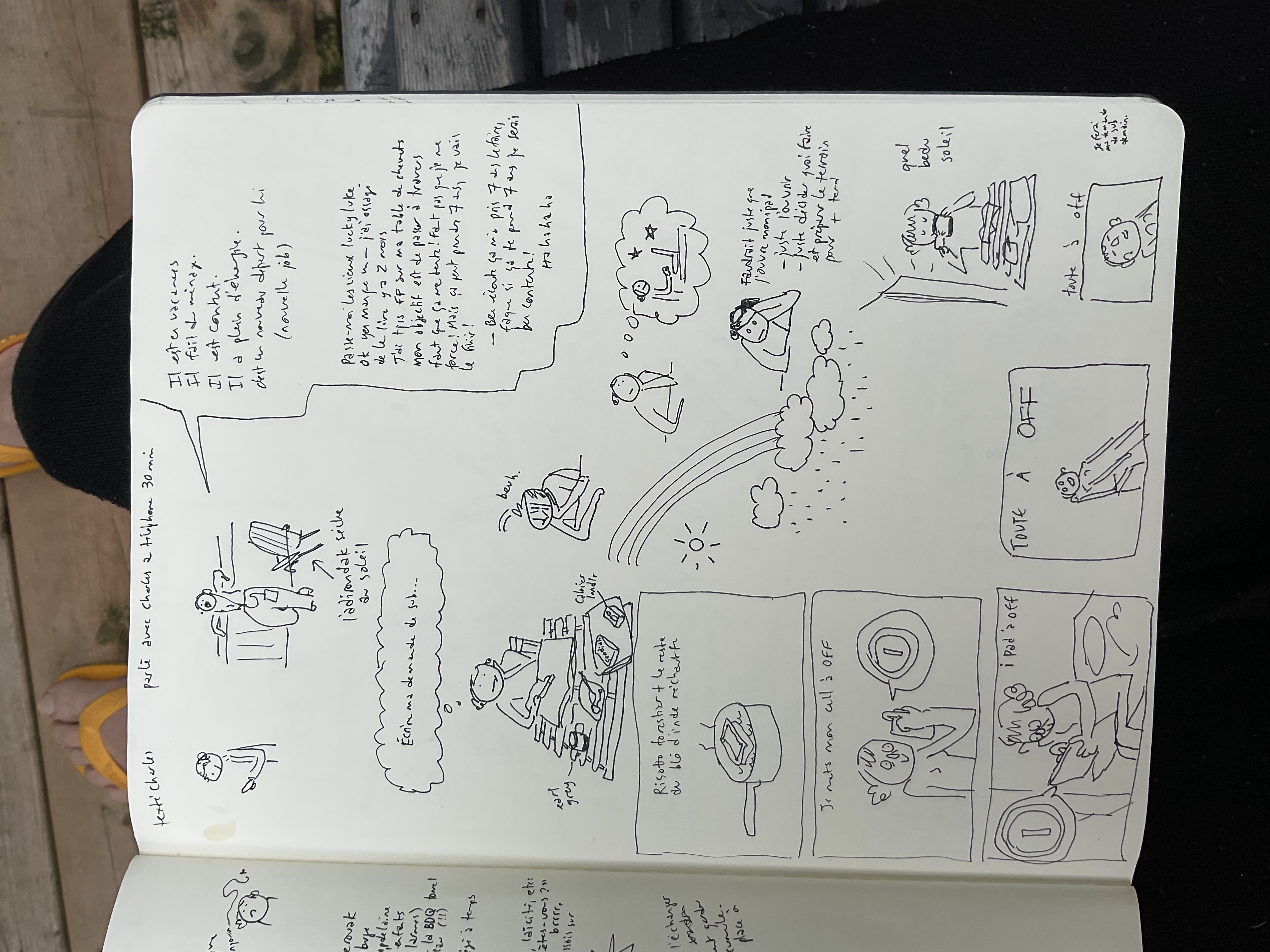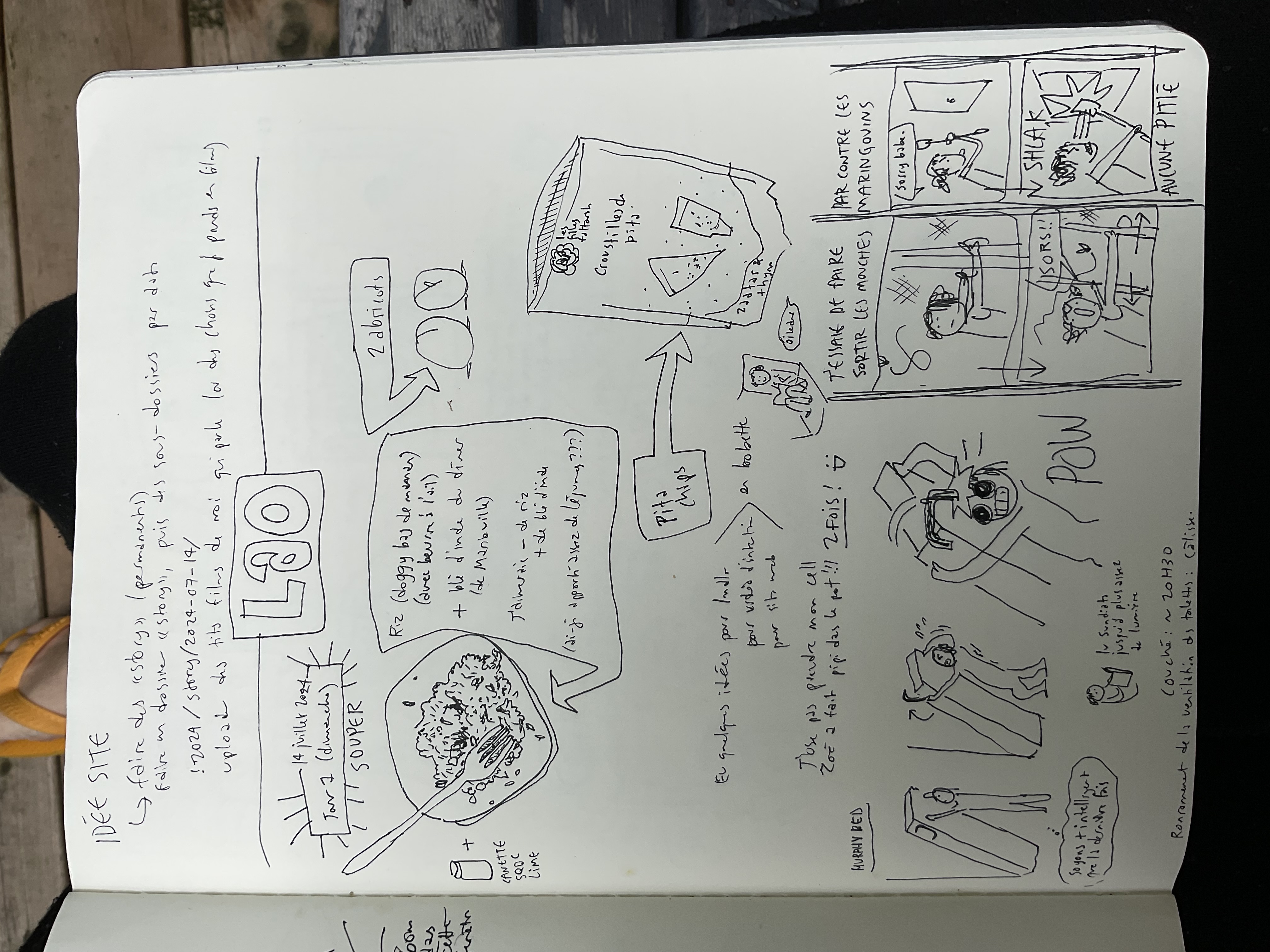 J'ai tenu un petit journal dessiné quand je suis allée m'enfermer dans le bois pendant une semaine (non un peu moins qu'une semaine). Ya du tout-nu!!