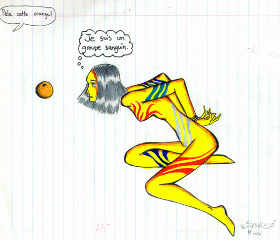1999-12-?_ J'ai conclu que toute cette époque aura une odeur vive. Je me souviens de quelques odeurs reliées aux époques de ma vie. En secondaire 2, par exemple, où l'odeur reste encore très accentuée. C'était le temps du "book", des conneries et des prises de conscience enfantines. Le tmeps où c'était noël pendant le cours d'économie familiale, où l'on faisait des boxers. Où j'ai rencontré ce con de Doum, avec le nez dans le front le temps d'une soirée. Ce qu'il était con. Le temps où j'étais tellement naïve que je me croyais dans un film. Eh bien je coris que ce début d'année va sentir quelque chose de très vif plus tard. Je vais m'en souvenir longtemps je crois (de toute façon, je ne suis pas très douée pour l'oubli). Une période sombre où je n'étais pas à l'aise avec la vie. Une époque où l'on me demandait de peler des oranges avec les mains attachées dans le dos. Le temps où mon avenir se jouait et où Aude me voyait devenir animatrice d'une émission de télé comme Les choix de sophie "mais en mieux", comme elle disait, où je jouerais du piano, ferais des extraits de pièces de théâtre, où je dessinerais en direct sur le plateau de tournage.... Mais je n'ai aps l'écorce d'une critique, ni d'une recherchiste. Je ne suis aps une tête à idée. Je suis manuelle et non cérébrale. Je créé à partir des autres, je n'invente rien. Je créé des copies de chefs-d'oeuvres qui existent déjà. Je fais ce qu'on me dit de faire et rien d'autre. J'ai des goûts, mais ce sont les goûts des autres. Dans le fond, je ne suis nullement moi. Je suis une addition de plusieurs, un melting-pot de personnalités. C'est peut-être pareil pour tout le monde.